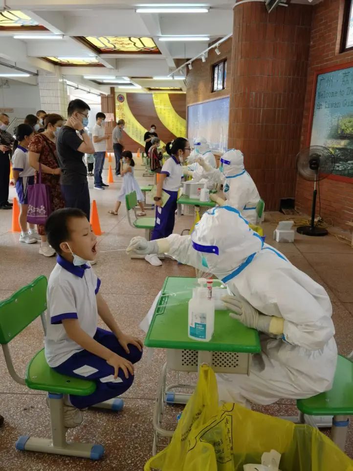 返校前夕,学校开展核酸检测,为学生返校做好准备工作。