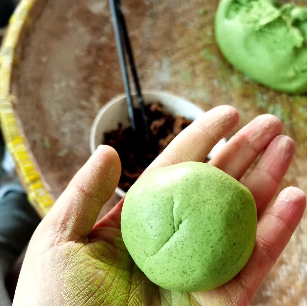 至于为什么会有人想出用艾汁+糯米做成包团这种吃法,古学斌从一些长辈口中就听过一个解释:艾草的特质,在于那股说香不像香、说臭也不像臭的气味会随温度升高而变化。