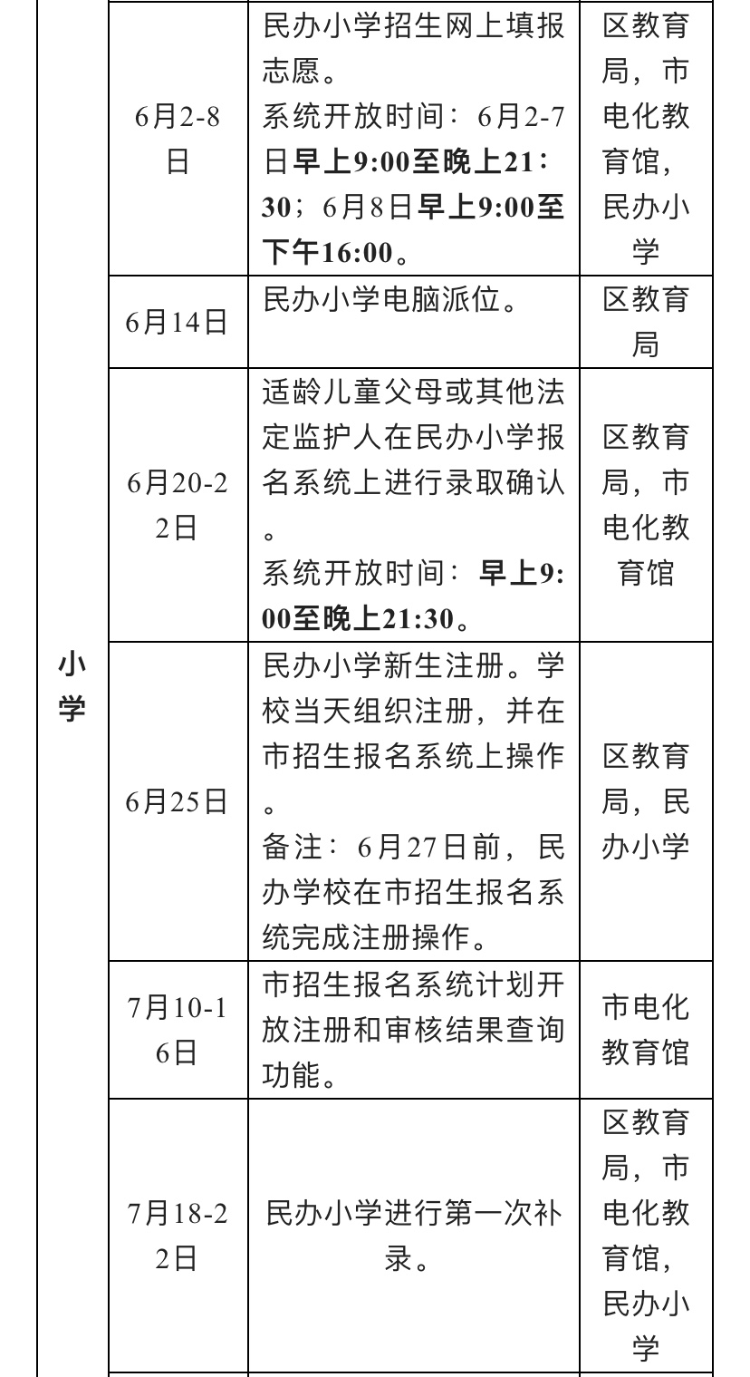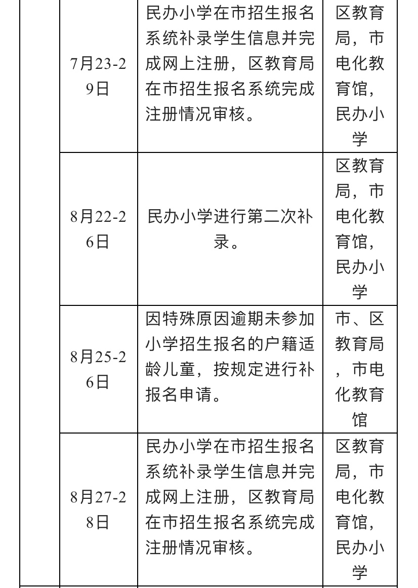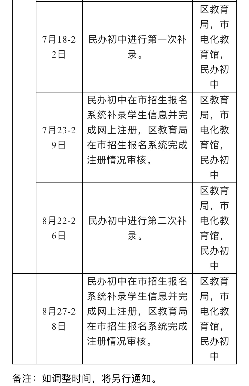 未完成招生计划及注册报到后有缺口的民办学校,以自主招生的方式进行补录。民办学校可在微信公众号公布剩余学位,严格按免试入学的规定进行补录。拟补录名单报区教育局审核通过后正式录取。原则上符合本区录取条件的适龄儿童少年均可参加补录。