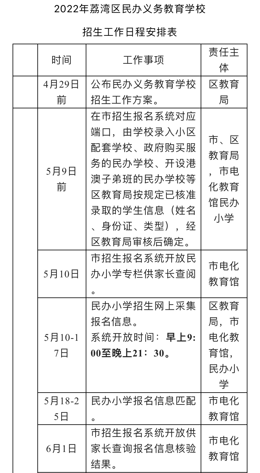 4月28日《2022年广州市荔湾区民办义务教育学校招生工作方案》(下称“方案”)公布。