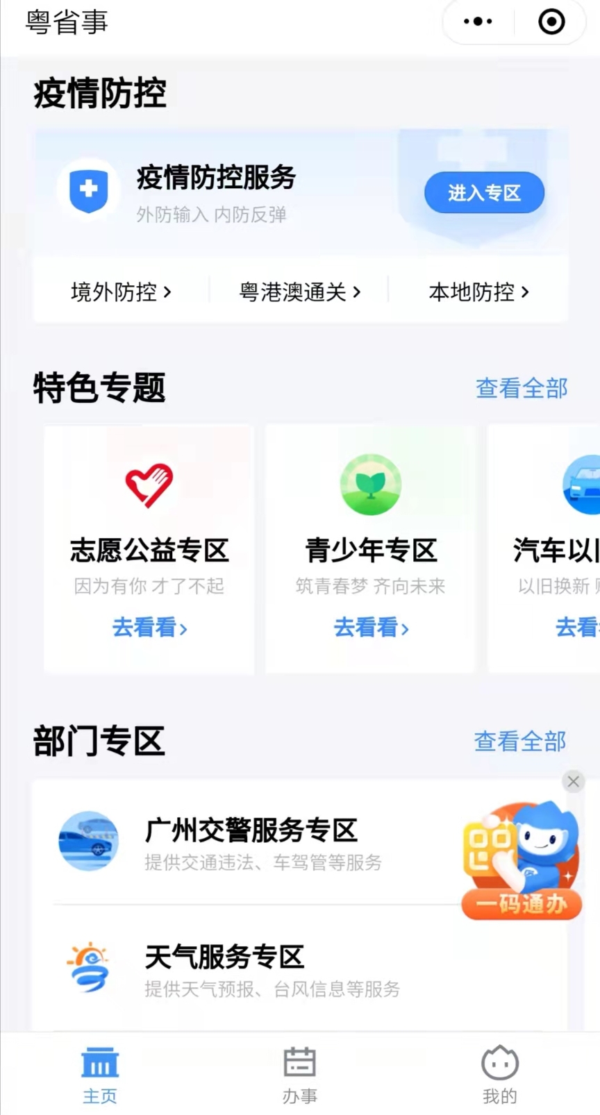 近年来,“粤省事”平台陆续上线了共青团广东省委员会的12355心理咨询、志愿服务、疾病救助、实习校招等多项重大服务,取得了显著的工作成效。为大力倡导青年优先发展理念,推动青年发展事业实现全方位进步,“粤省事”以用户为导向,广泛整合青少年服务资源,为广东青少年推出专属服务专区。