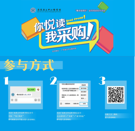 为搭建优质的全民阅读服务平台,提高读者借书的便利性和积极性,广东省立中山图书馆联合广州购书中心于2015年启动“你悦读,我采购”(下称“悦采”)图书现采现借活动。读者可以在指定书店或线上平台选择心仪的新书免费借回家,借阅规则与普通书刊一致。