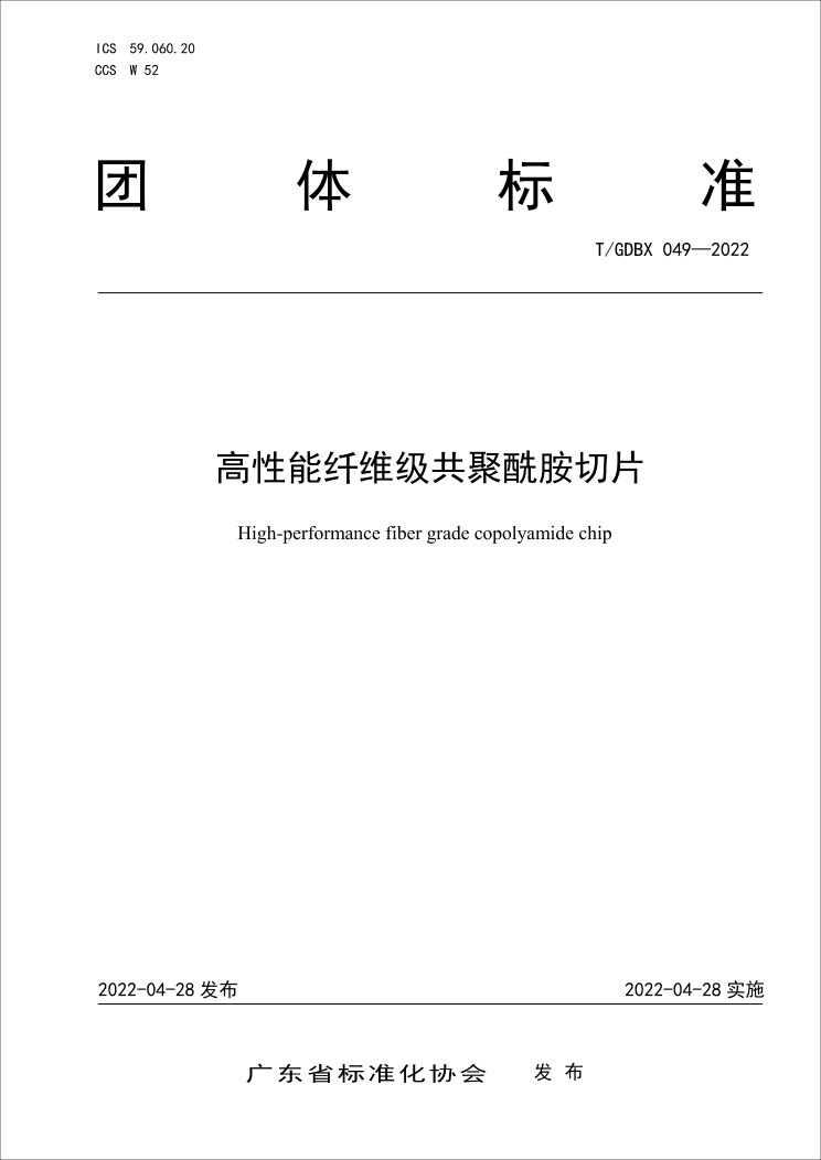 为适应创新需要和市场急需,广东新会美达锦纶股份有限公司、华南理工大学和广东彩艳股份有限公司联合,在调研基础上,编写了《高性能纤维级共聚酰胺切片》标准,由广东省标准化协会作为团体标准发布。