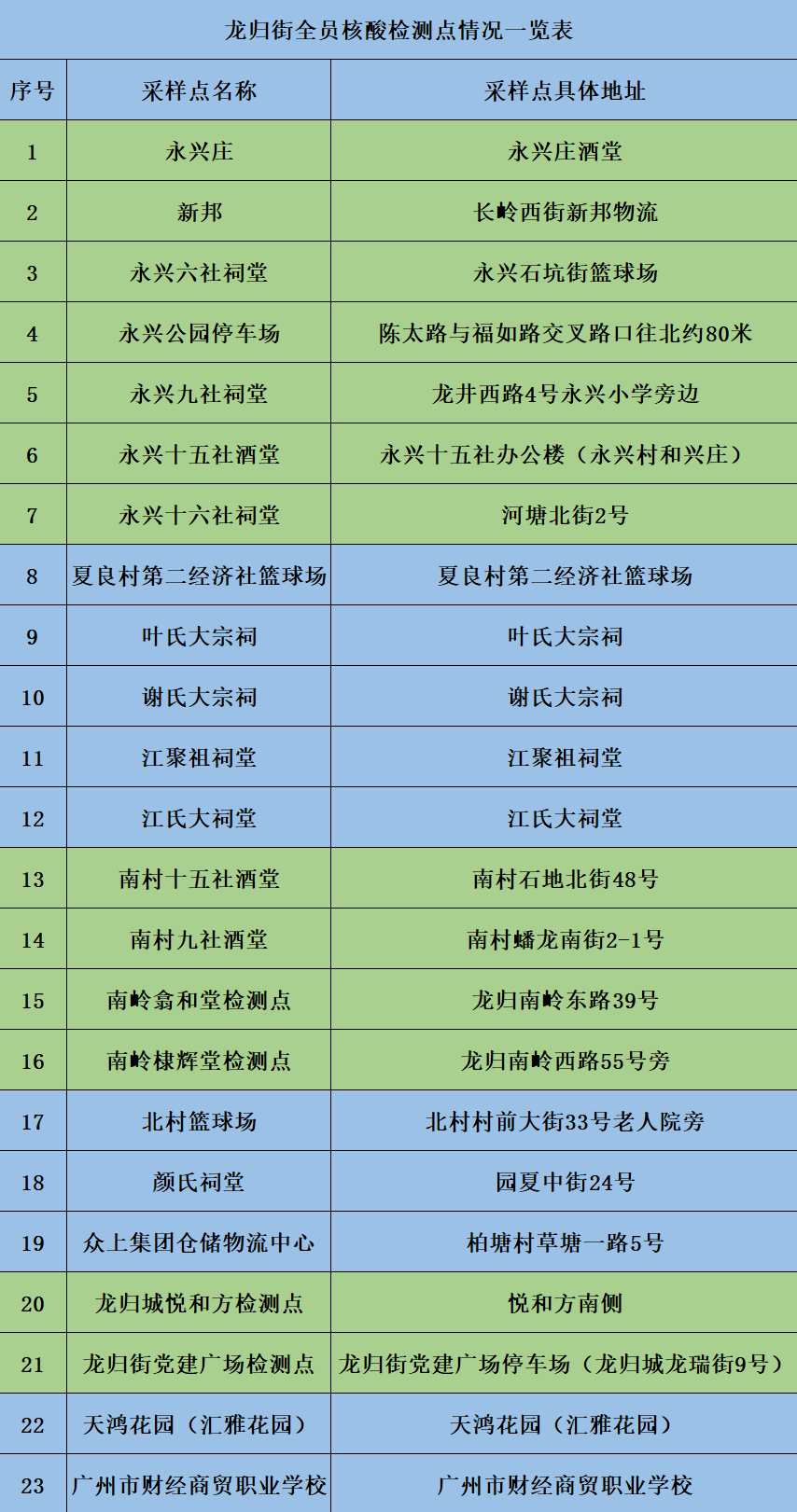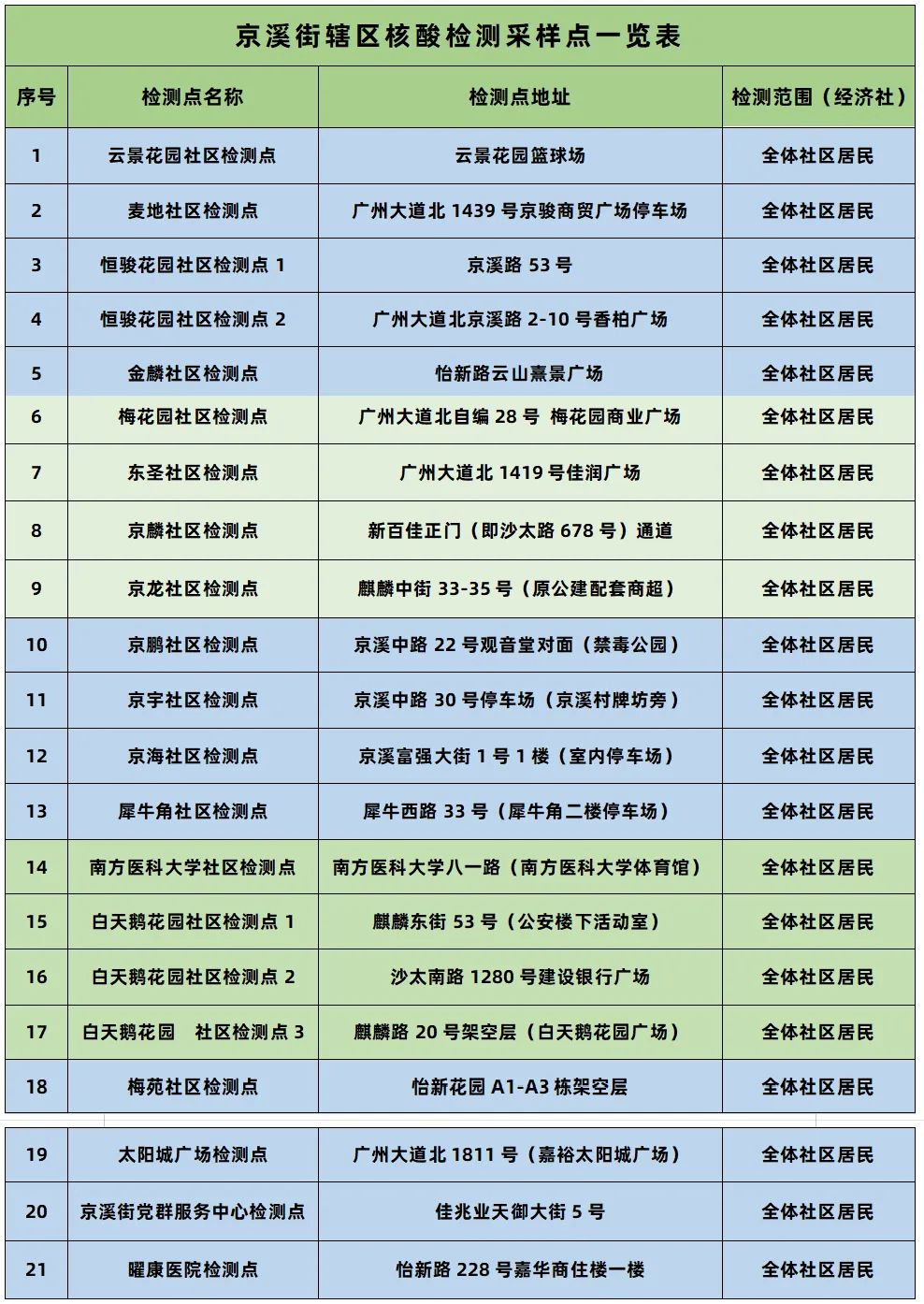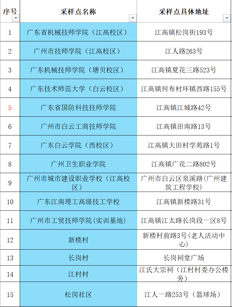 为进一步强化新冠肺炎疫情防控工作,切实保障广大居民群众身体健康和生命安全,按照疫情防控工作安排,4月28日,广州市越秀区、白云区、花都区、海珠区、黄埔区、番禺区、天河区、荔湾区分别发布开展全员核酸检测工作的通知,采样点汇总如下。