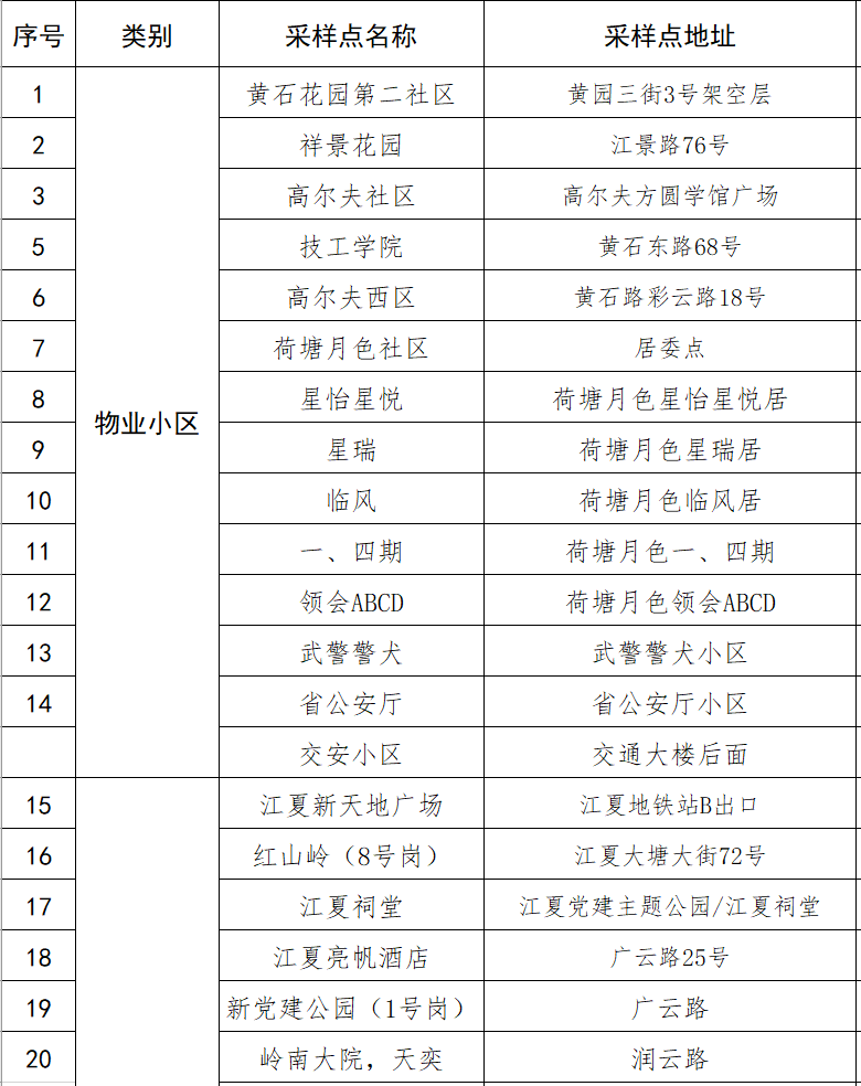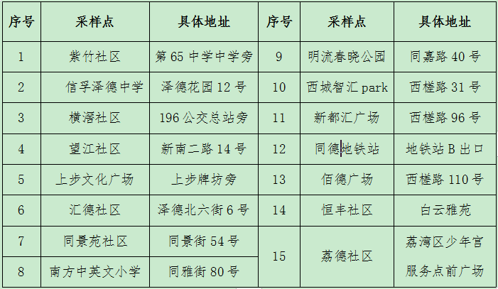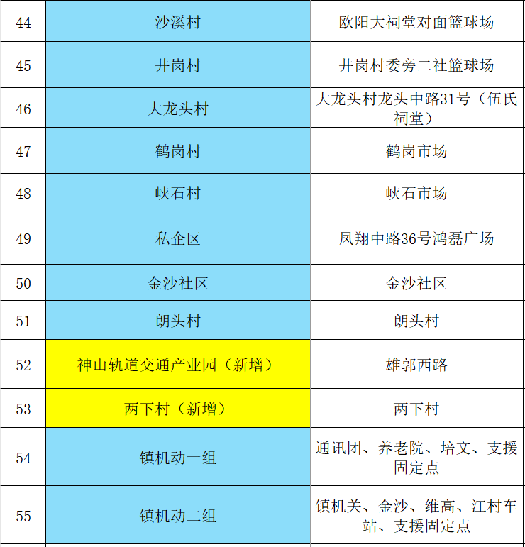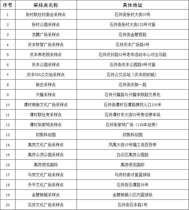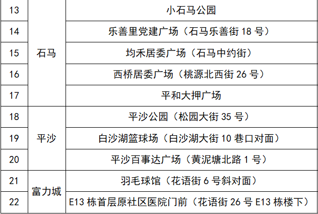 持黄码以及收到短信提醒的市民朋友,就近到以下黄码核酸采样点进行核酸检测。