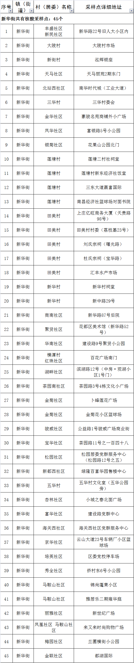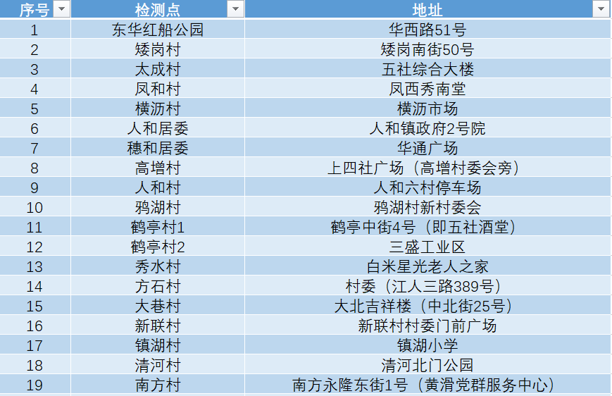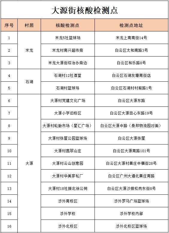 大源街定于4月28日(星期四)上午9:00对全街居民开展核酸检测工作,16个检测点具体如下