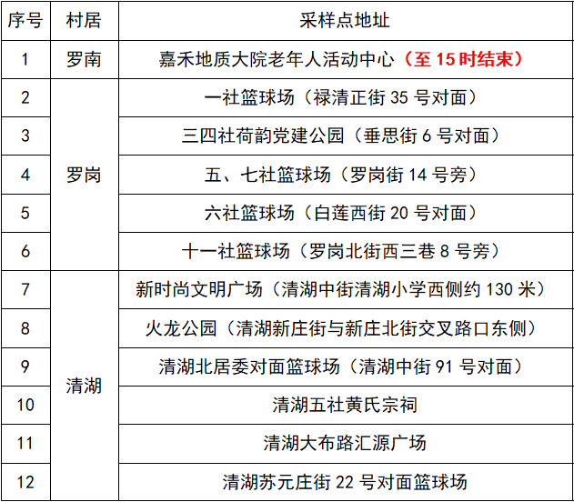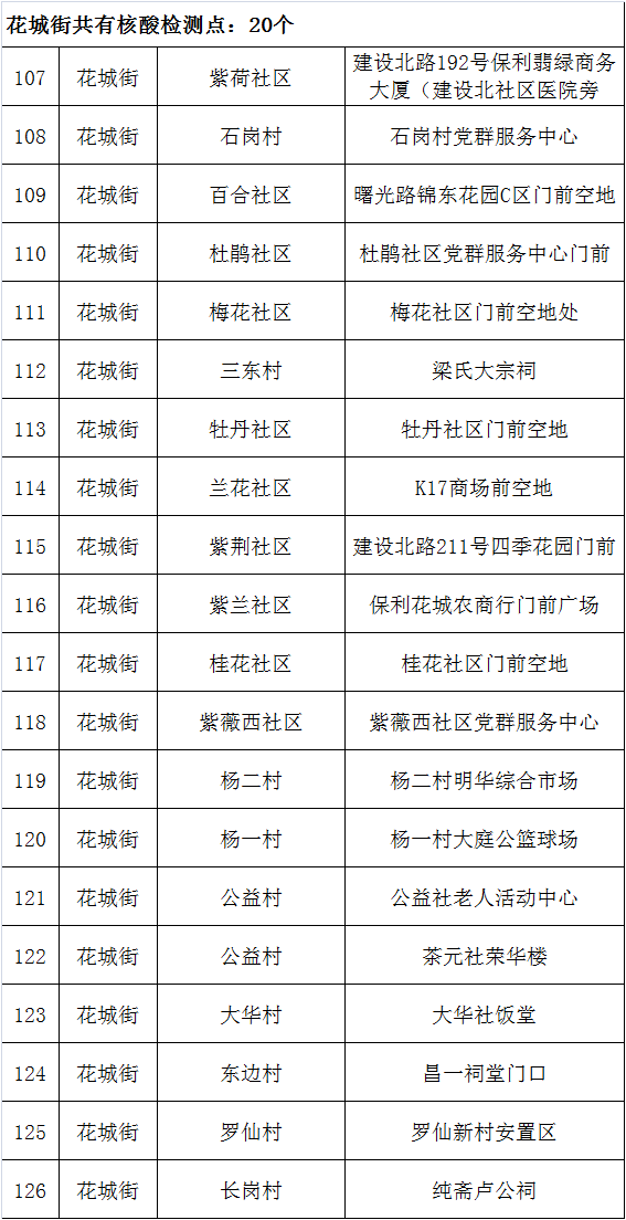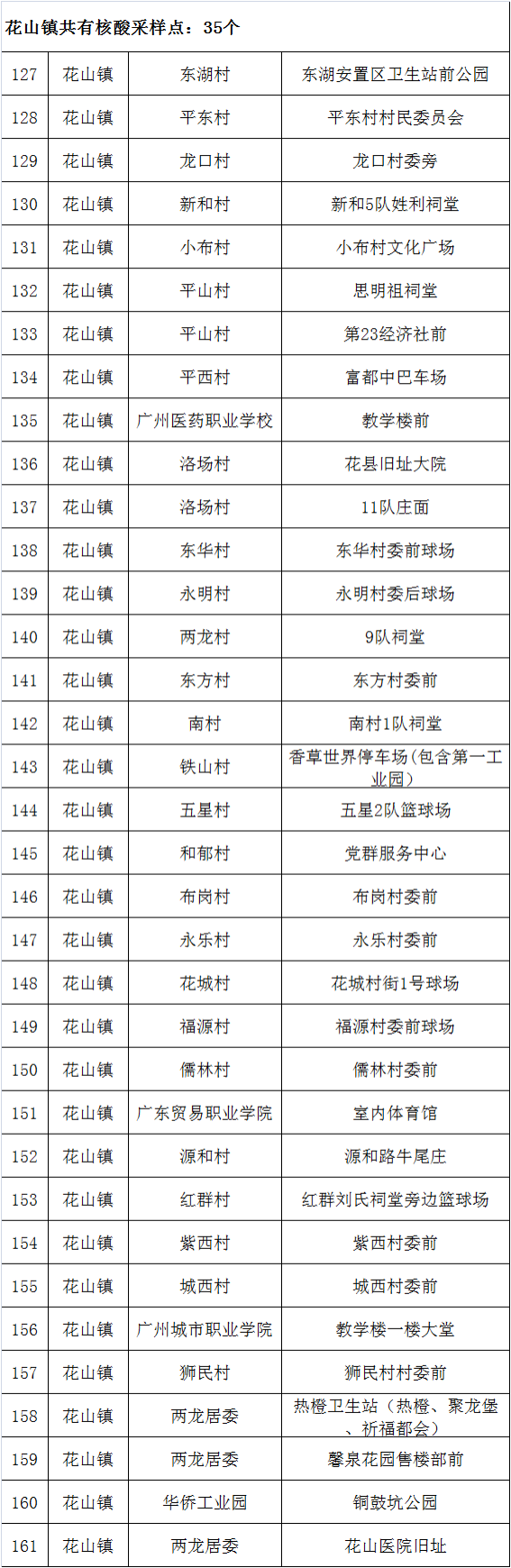 请根据所在村(居)委工作人员的通知指引,分时段有序到达指定地点(详见花都区全员核酸检测采样点一览表)开展核酸检测,做到“应检尽检”。请未收到村(居)委通知的居民朋友,不要擅自前往,避免人员聚集和等候时间过长。