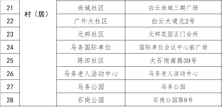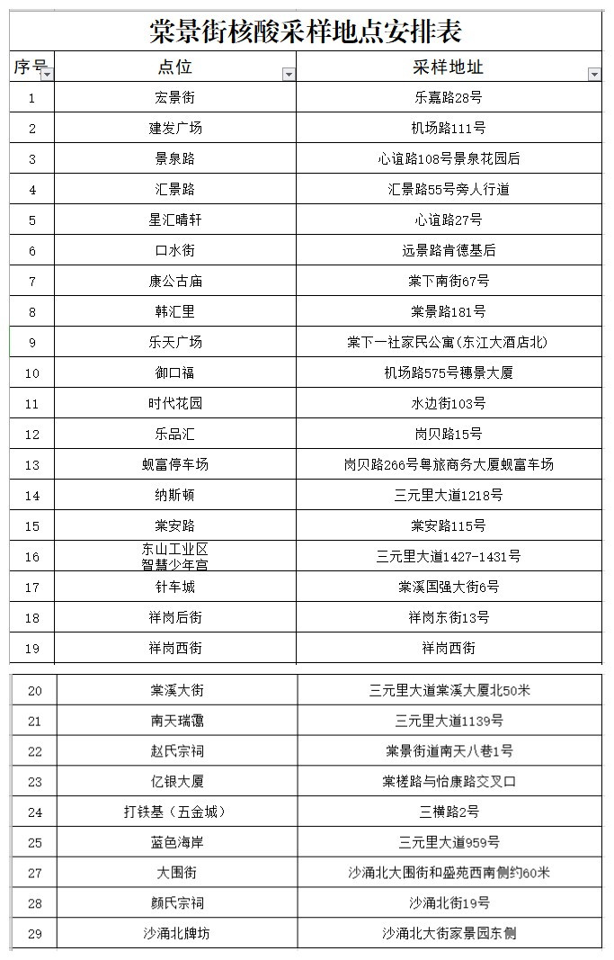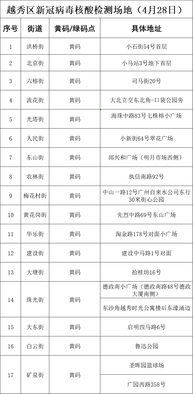 4月29日越秀区18条街道新冠病毒核酸检测场地