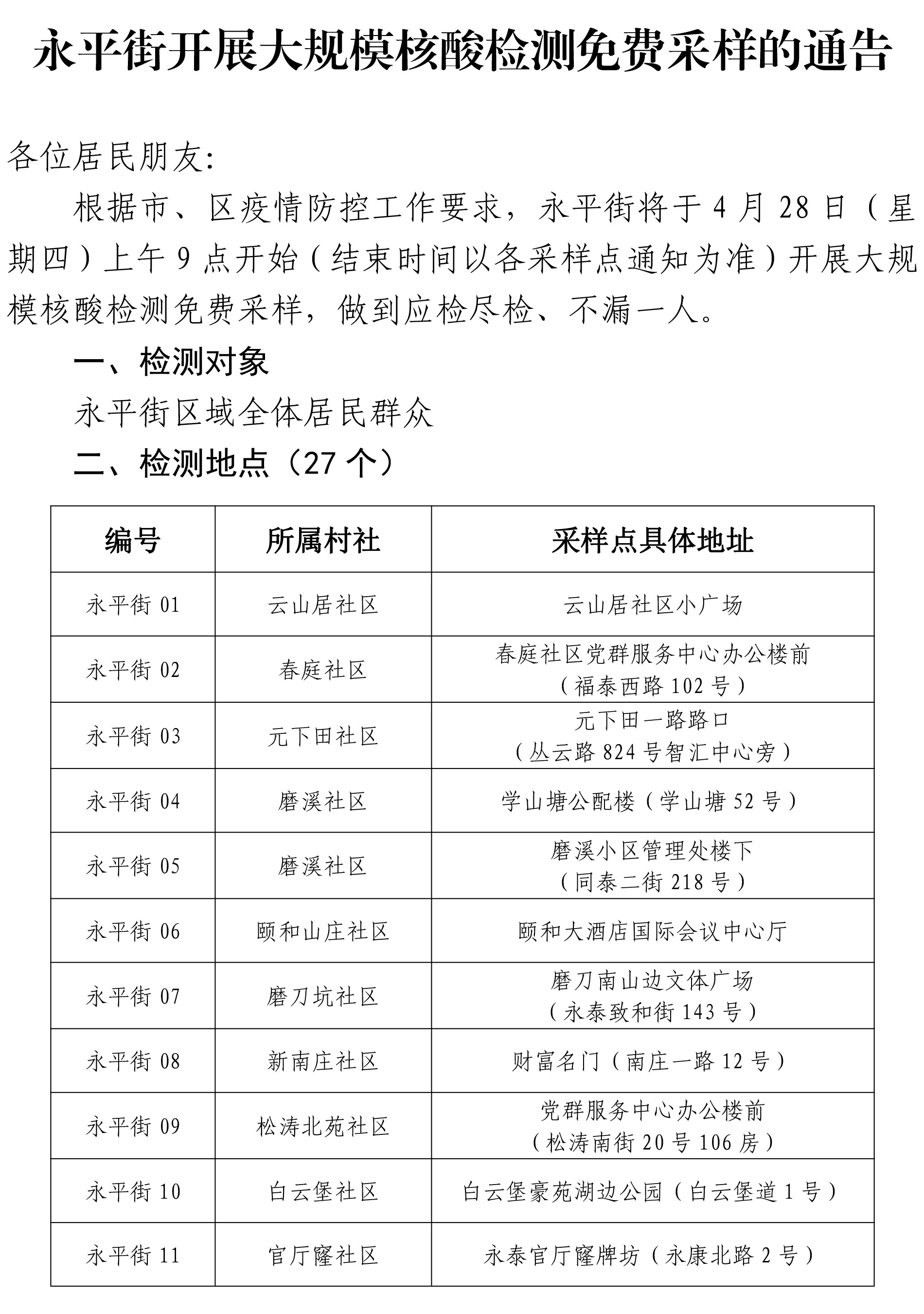 龙归街定于4月28日10:30—21:00(具体以医护到达、离开时间为准)在全街范围开展全员核酸检测。