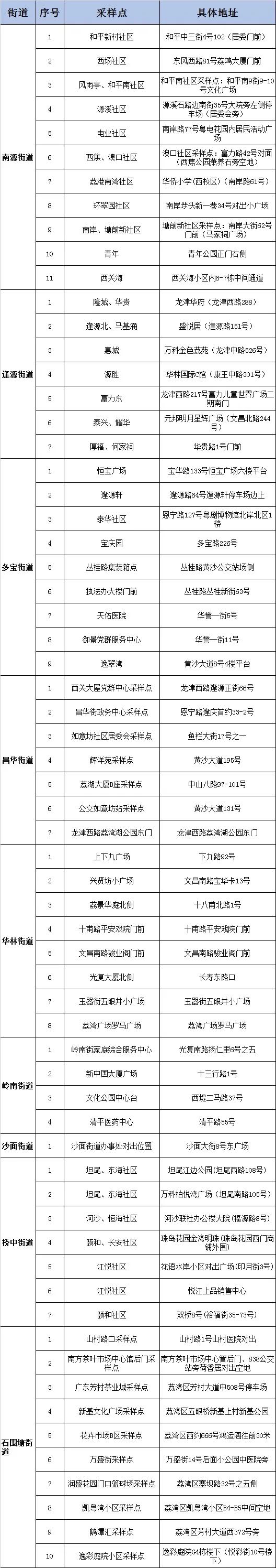 广州市荔湾区22条街道街道核酸检测临时检测点(2022年4月28日)