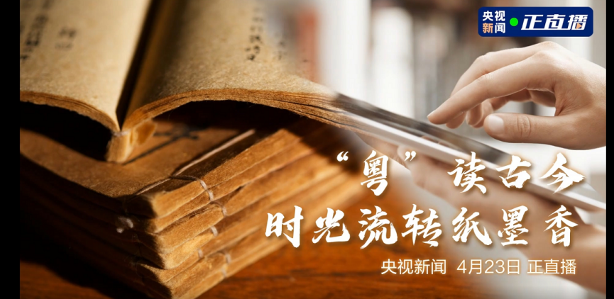 4月23日,中央广播电视总台广东总站暨粤港澳大湾区总部联合广东省立中山图书馆,在央视新闻客户端等总台新媒体平台推出两小时新媒体直播节目“‘粤’读古今 时光流转纸墨香”。