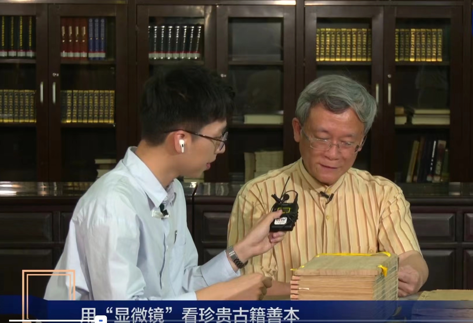 倪俊明(右)介绍馆藏宋刻元明递修本《临川先生文集》