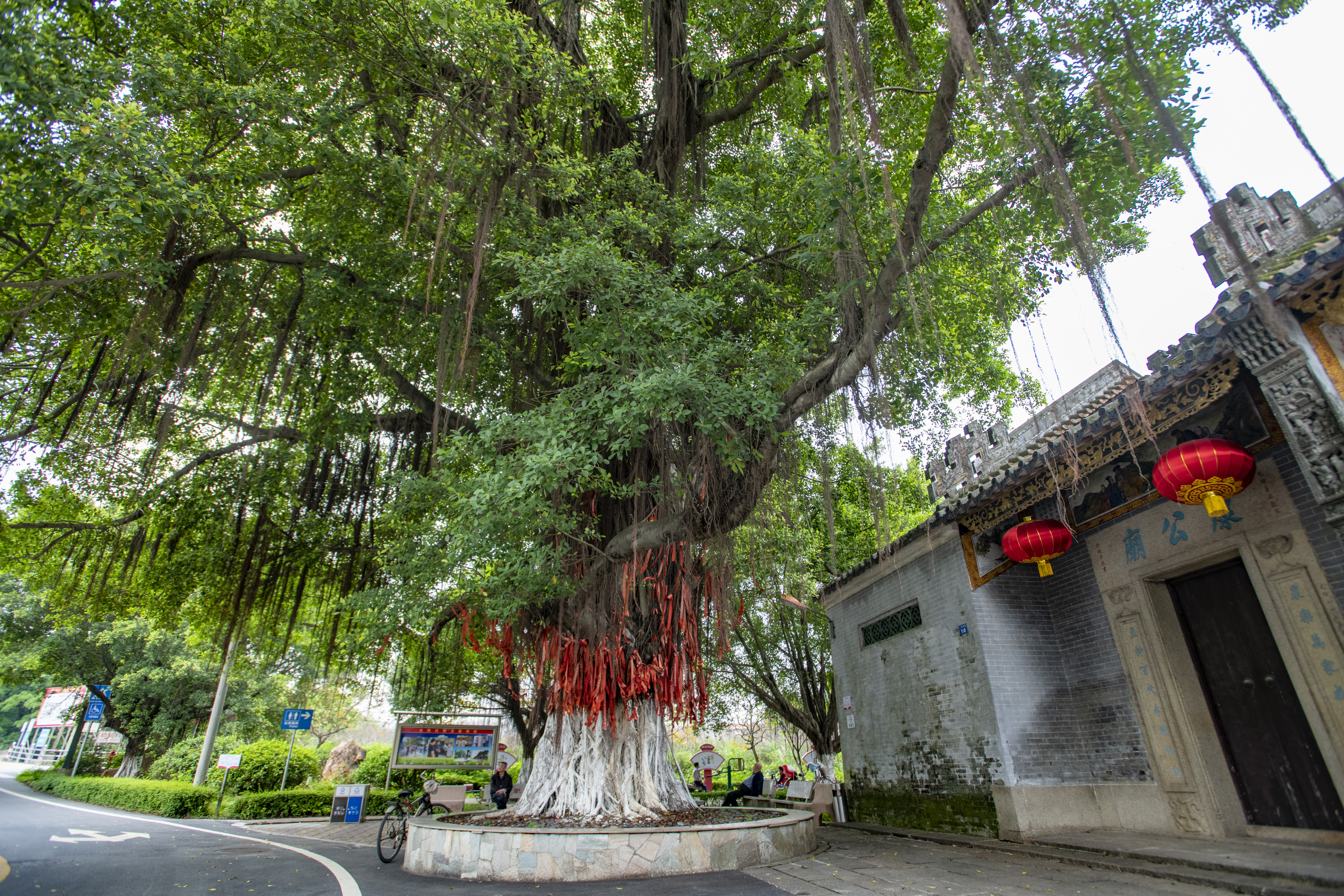 树种:榕树(细叶榕),位于广东省广州市白云区江高镇大田村委会大田西路166号前。
