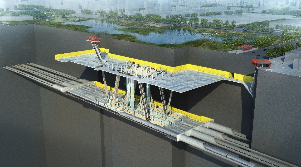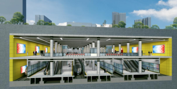 广州地铁设计研究院在车站主体土建封顶的情况下,设计了外扩一跨站厅的方案,使站厅公共区、换乘通道与商业下沉广场无缝衔接,不仅可实现地铁站和周边物业共赢互通,整体空间也将成为一座以地铁为主导的地标建筑。这个合建方案被评为政府、地铁公司、开发商、设计院、老百姓均获益的“五赢方案”。