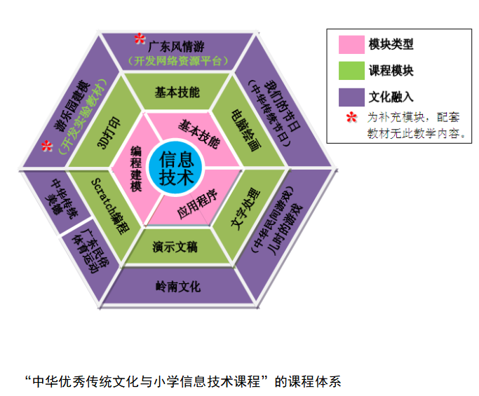 如何既让学生学习信息技术知识技能,又形成对中华优秀传统文化的理解和认同?据介绍,郑贤老师的团队根据小学信息技术课程的6个知识模块,结合7大文化主题、91个具体情境,重构了新的课程内容体系。