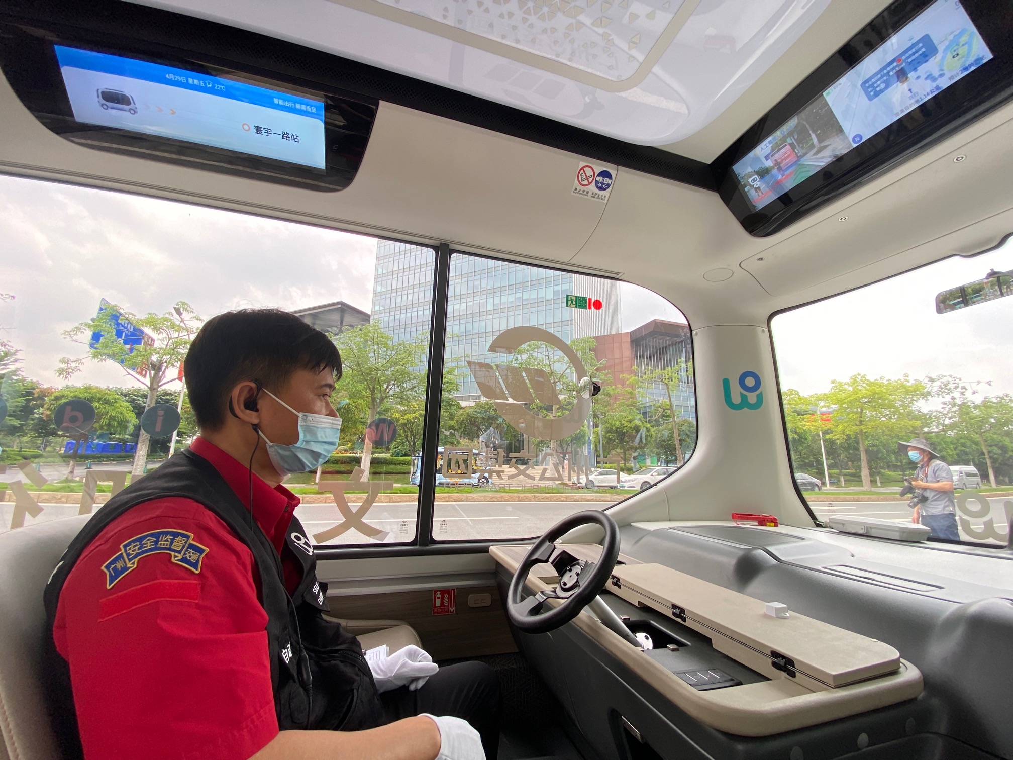 4月29日,广州生物岛上,广州市首批自动驾驶便民线正式开放载客测试。