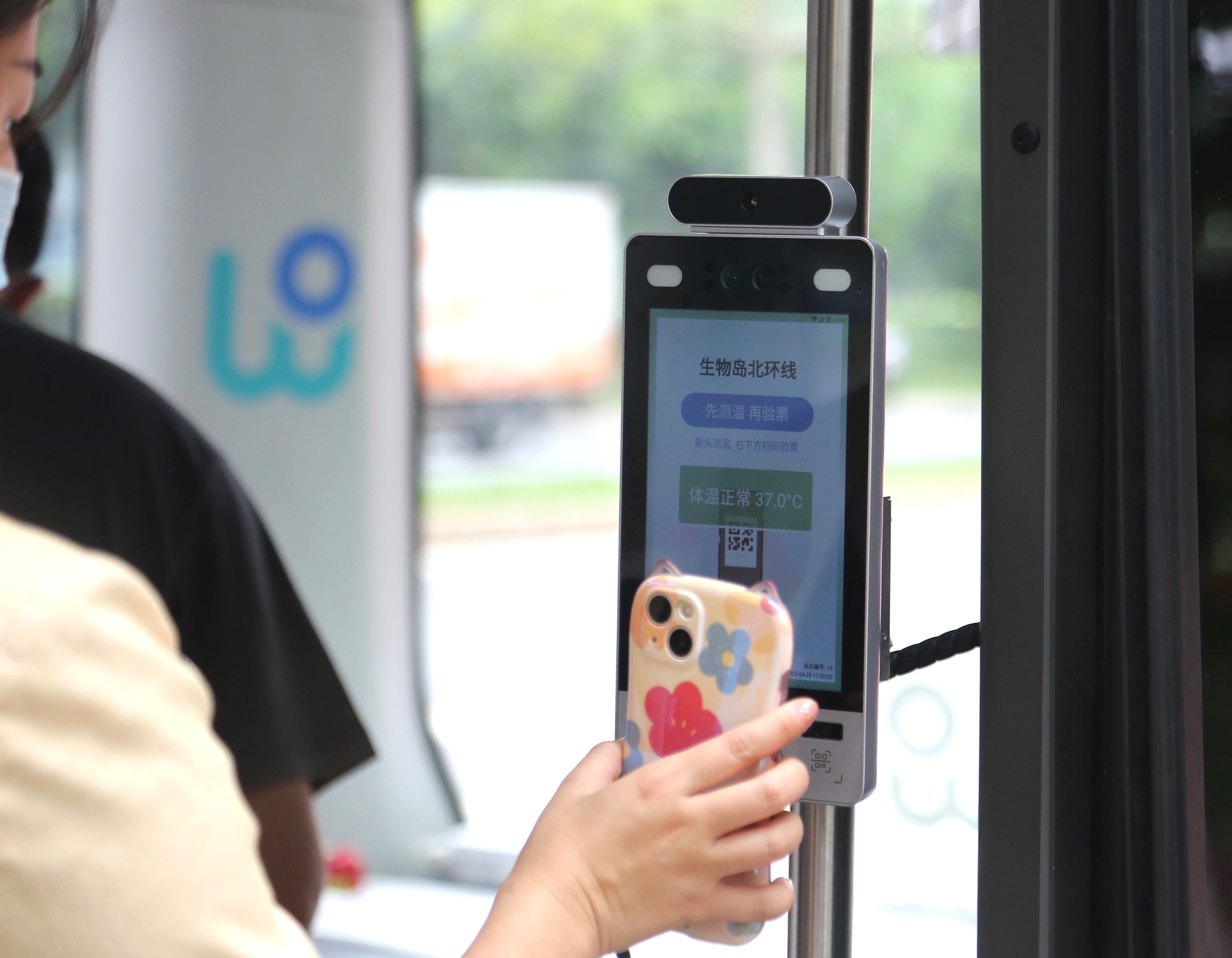 29日,记者来到官洲地铁站A口看到,在“智联巴士”小程序提前购票后,在门边的扫码终端机进行验票测温后便可上车。“一人一座,车内有乘客站立不会发车,每一位乘客都要系好安全带。”现场工作人员表示。