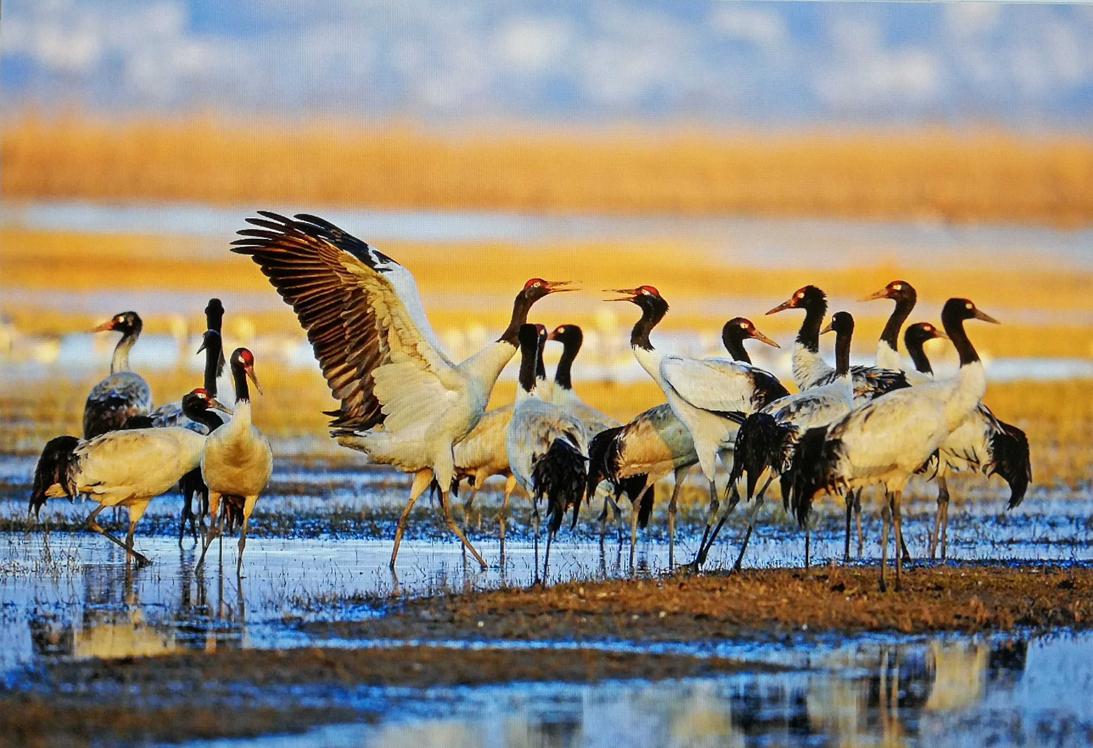 草海是中国三大高原湖泊(草海、滇池、青海湖)之一,也是贵州省最大的高原天然淡水湖泊,国家级自然保护区。它位于威宁县县城西南面,水域面积46.5平方公里,相当于8个西湖那么大。高山、淡水、湖泊再加上充足的日照,让草海成为候鸟越冬的最佳目的地。草海作为180余种计20万只鸟类的重要越冬地和迁徙中转站,还是我国特有的高原鹤类——黑颈鹤的主要越冬地之一。