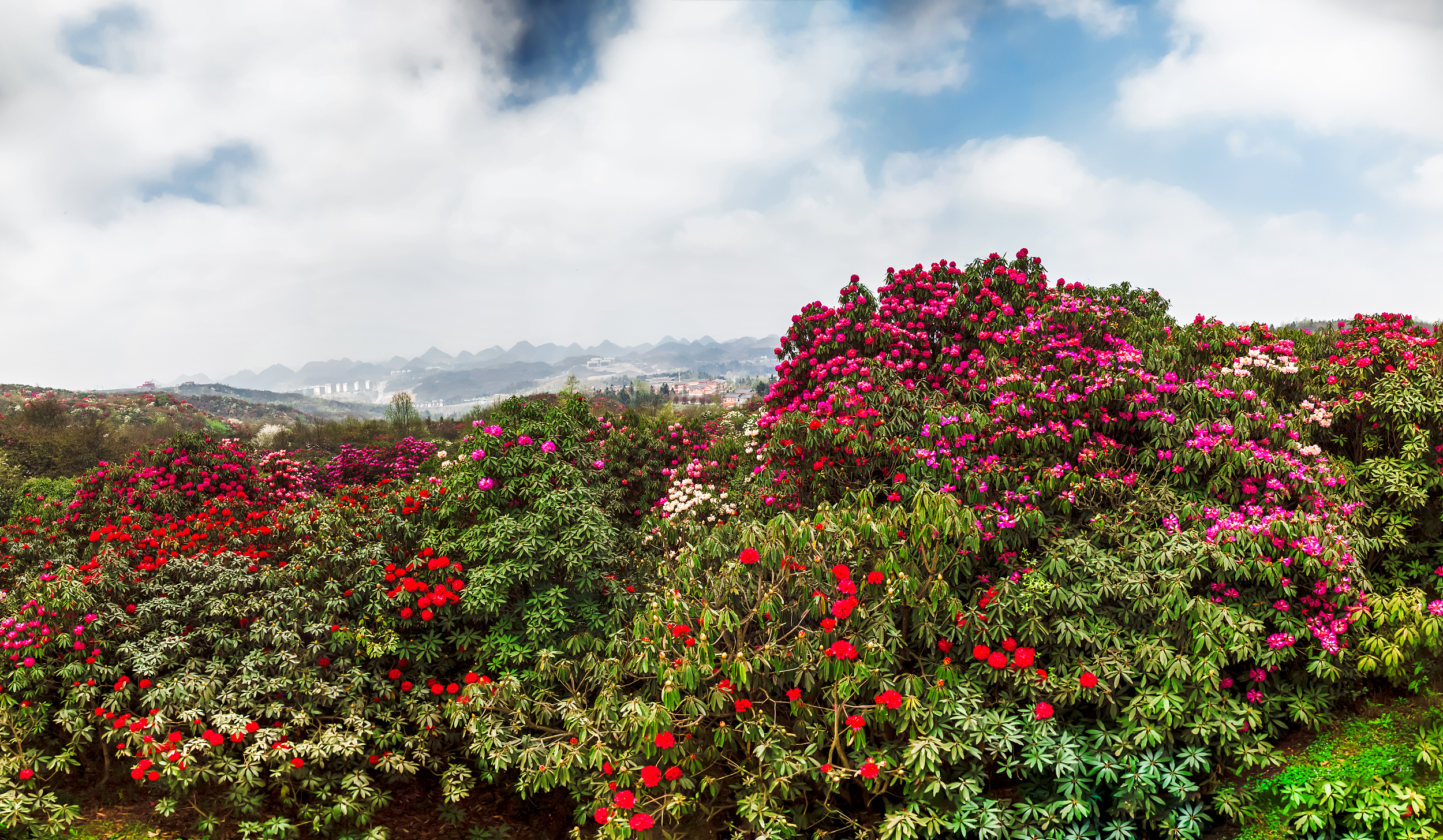 当春风吹拂过毕节连绵的山脉,毕节的百里杜鹃也陆续展露欢颜。3月~5月间,国家5A级景区百里杜鹃的杜鹃花竞相绽放、姹紫嫣红,蔚为壮观,好似为地球披上了一条绚丽的彩带,于是有了“地球彩带·杜鹃王国”的美誉。