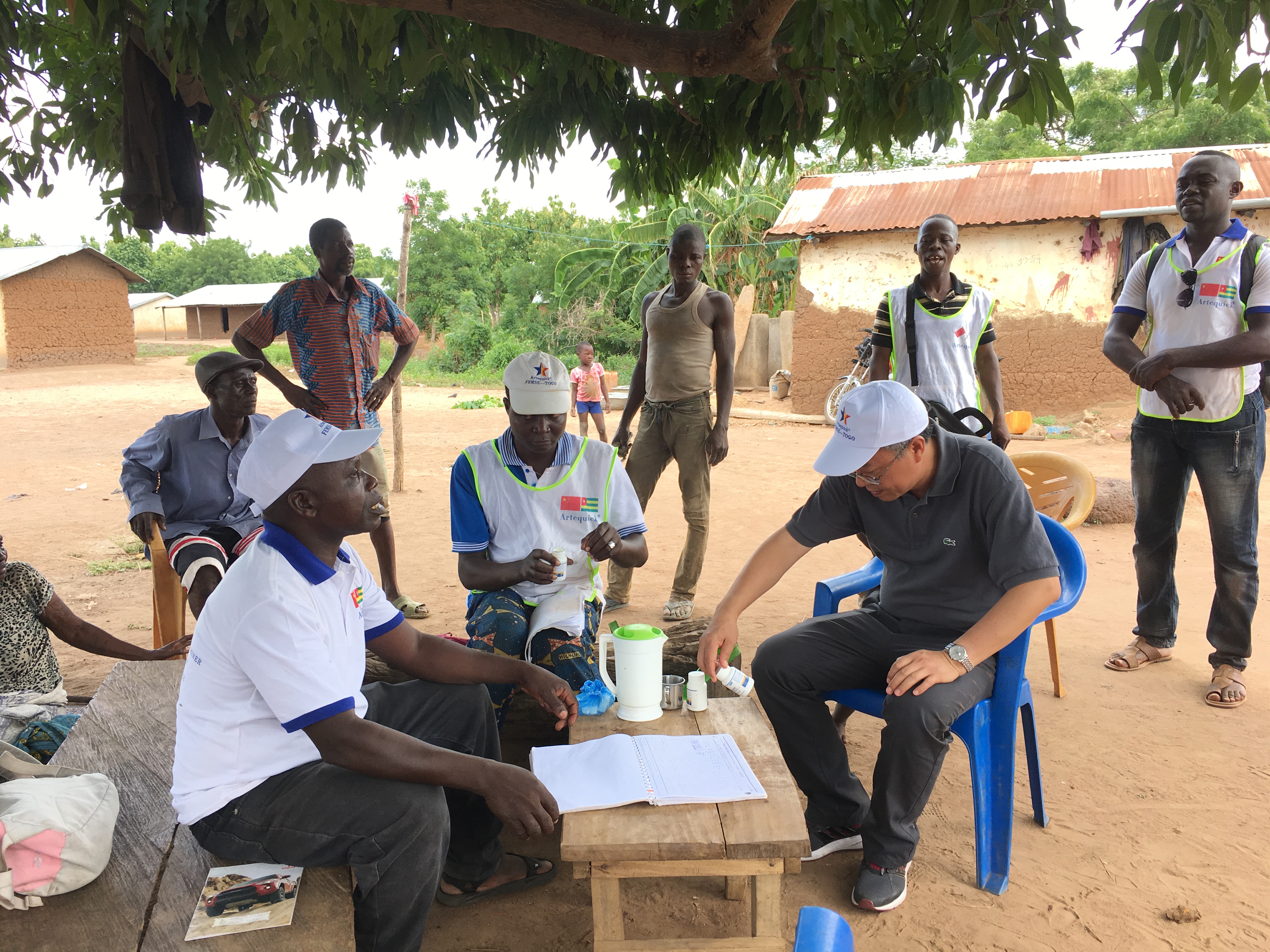 广州中医药大学宋健平教授团队在多哥下乡帮助当地居民正确服药。