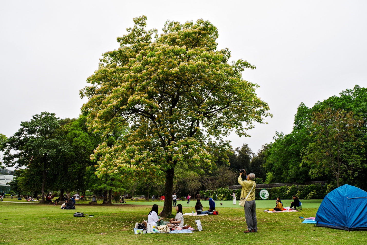 此外,在稀树草坪还有树头菜、大花第伦桃、中国无忧树、叉叶木、海杧果等植物,在中心大草坪周边有烟火树、龙牙花、虾子花、鸳鸯茉莉、吊灯树等植物。露营“叹世界”的同时还可以学习科普,一举多得。不少人会选择在树下的草坪铺上露营毯,婆娑的树影,微风习习的静谧环境,可以发呆一整天。