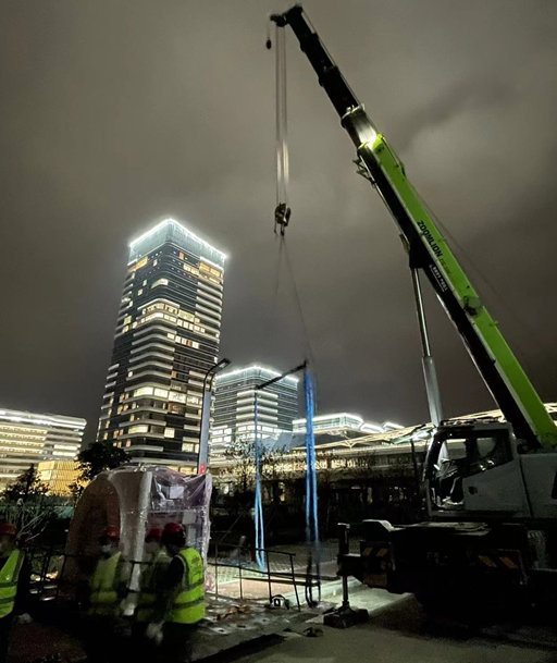 大型吊车、叉车双管齐下,工作人员深夜奋战