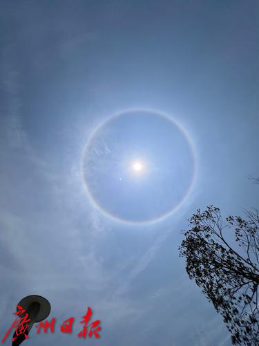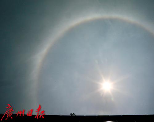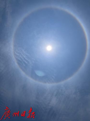 今天(4日)中午13时左右,广州番禺洛浦岛上空的日晕。