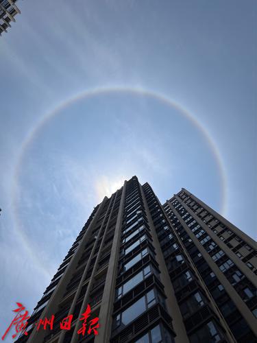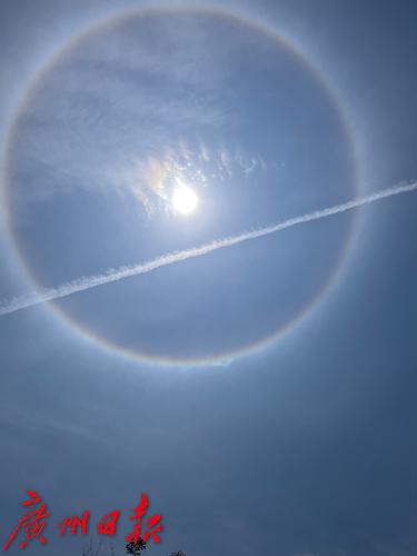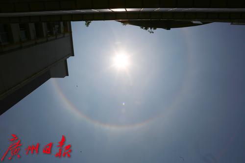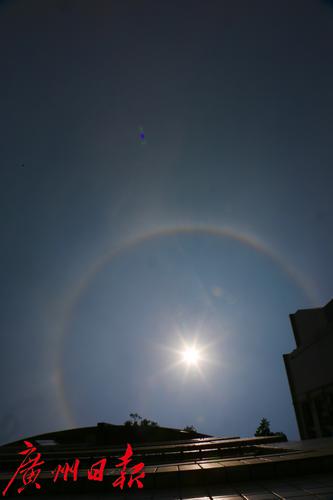 今天(4日)中午13时左右,广州黄埔中新知识城上空的日晕。