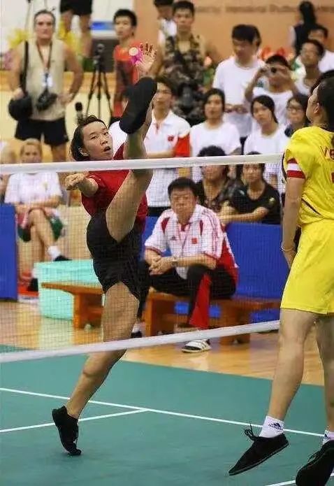 2010年世界毽球锦标赛,胡健平正在进攻(图片由受访者提供)。