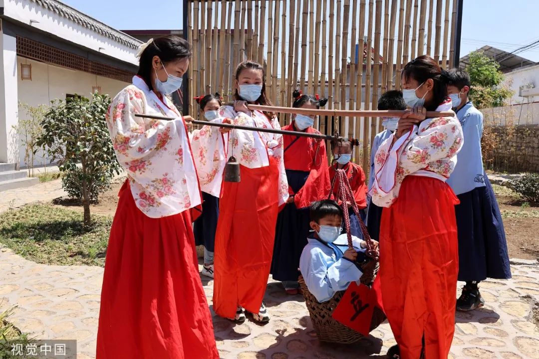 先是称孩子,秤砣要往外捋,只能增重,不能减重,如此便会不怕炎热,长寿健康。