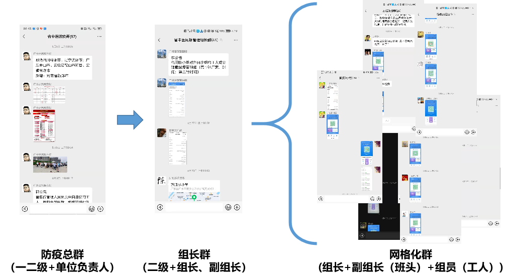 “在网格化管理架构之下,我们通过建立微信群完成每日防疫管理工作。”据王如琨介绍,核酸检测安排、流调信息收集等信息由领导小组在防疫总群与组长群公布,工人每日健康码截图则由网格分区小组组长在网格群收集并汇总上报。通过网格三级管理的微信群,项目的上千号人实现了上下信息有效、迅速交流。