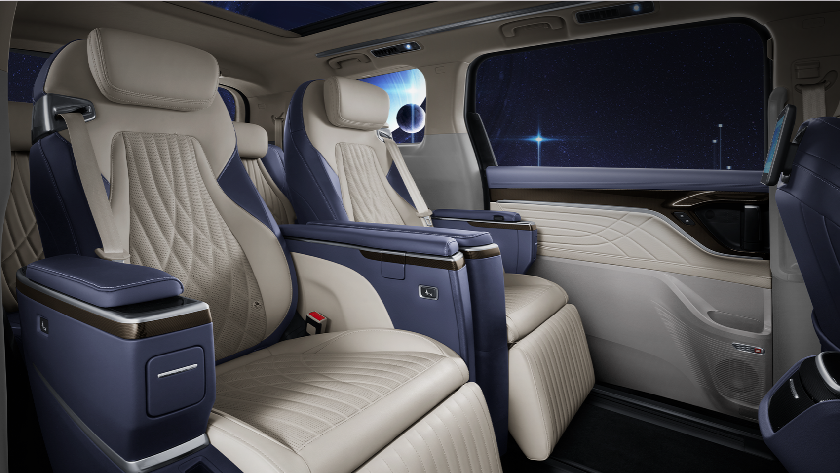 前排采用一体式“卷展云舒”智慧三联屏:主驾配备10.25吋液晶仪表、12.3吋高清触摸中控屏以及10吋风挡HUD抬头显示,副驾配备12.3吋互动触控屏以及3吋imon屏AI buddy,支持分区空调调节、视频音乐播放等功能,呈现新派的智慧驾驶舱空间;第二排则拥有太空舱豪华座椅,电动腰托、头枕、伸缩腿托,以及加热、通风、按摩、一键联动模式等十二项电动调节,还搭载了液晶扶手屏,隐藏式小桌板等;第三排空间搭载两个独立电动座椅,配备专属USB接口、空调出风口及可视面积达0.2㎡的超大后排车窗。