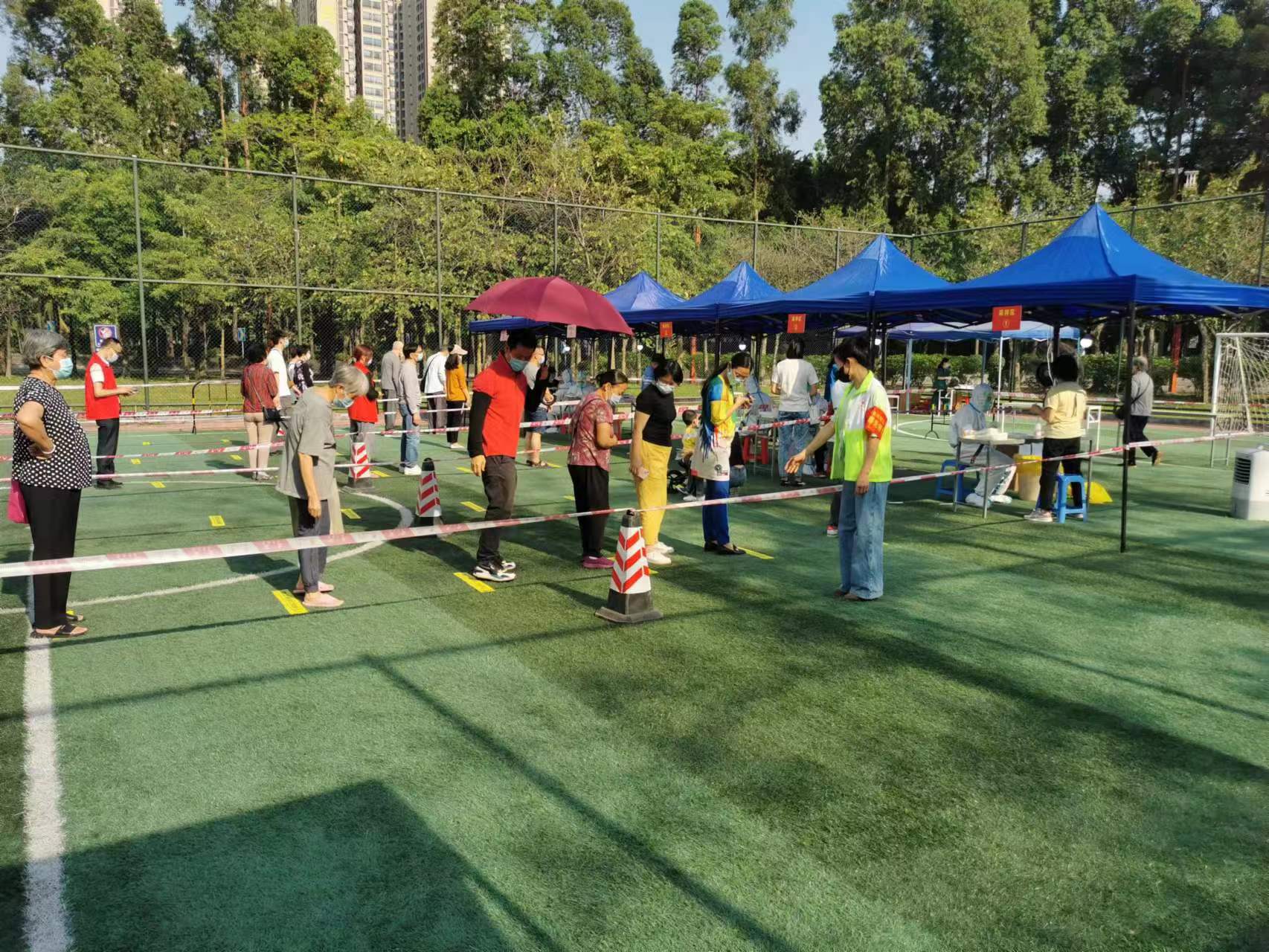 5月7日,记者从番禺区城市管理和综合执法局获悉,为提高辖区核酸检测能力,方便市民就近、快速完成采样,番禺区市桥街道办事处在星海公园、市桥西园、德兴公园、新广场公园、水晶宫公园、西丽公园等多个公园绿地开辟临时大规模核酸检测点。