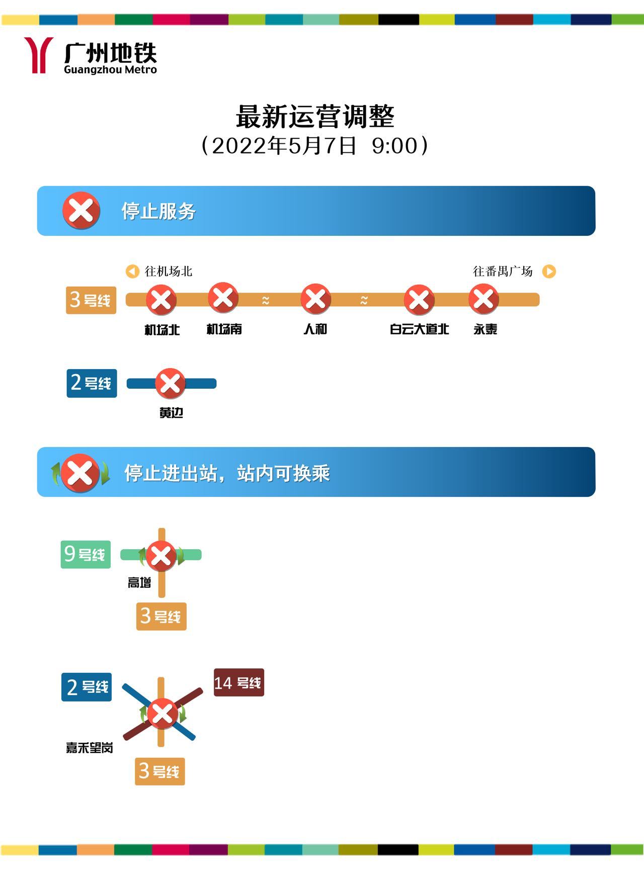 据“广州地铁”微博消息:接政府部门通知,因疫情防控需要,自5月7日9:00起,广州地铁三号线机场北站,广州东环城际白云机场北站停止对外服务(保留内部地铁与城际换乘功能)。