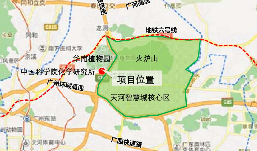 天河外国语学校智慧城校区项目地块位于天河区中部,地块西侧紧邻中国科学院化学研究所、北侧为华南植物园、东侧紧靠华南快速干线。四周地势平坦,视野开阔,距离火炉山直线距离仅300米,具备良好的自然生态环境。项目红线范围内土地权属全部为长湴村及岑村集体所有,总用地面积131006平方米,岑村河将地块划分为南北两个片区,其中北片区面积为74372平方米,南侧面积为56634平方米。
