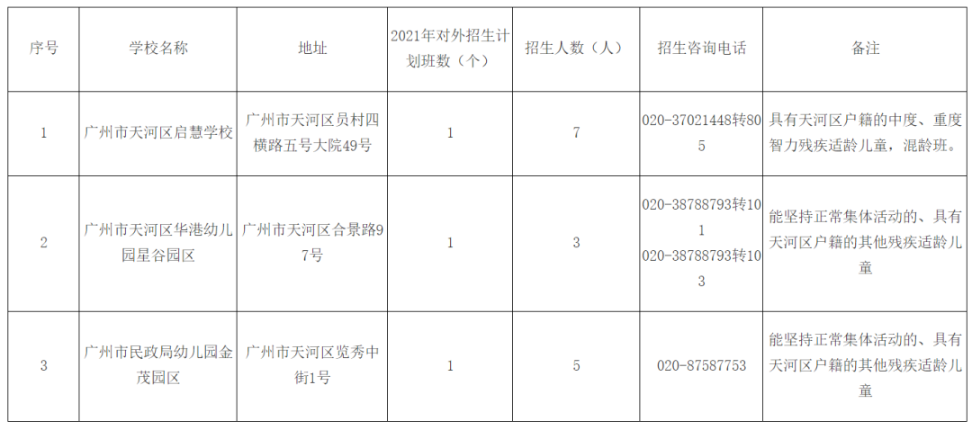 天河区启慧学校幼教班、天河区华港幼儿园星谷园区、广州市民政局幼儿园金茂园区特教班招生报名;