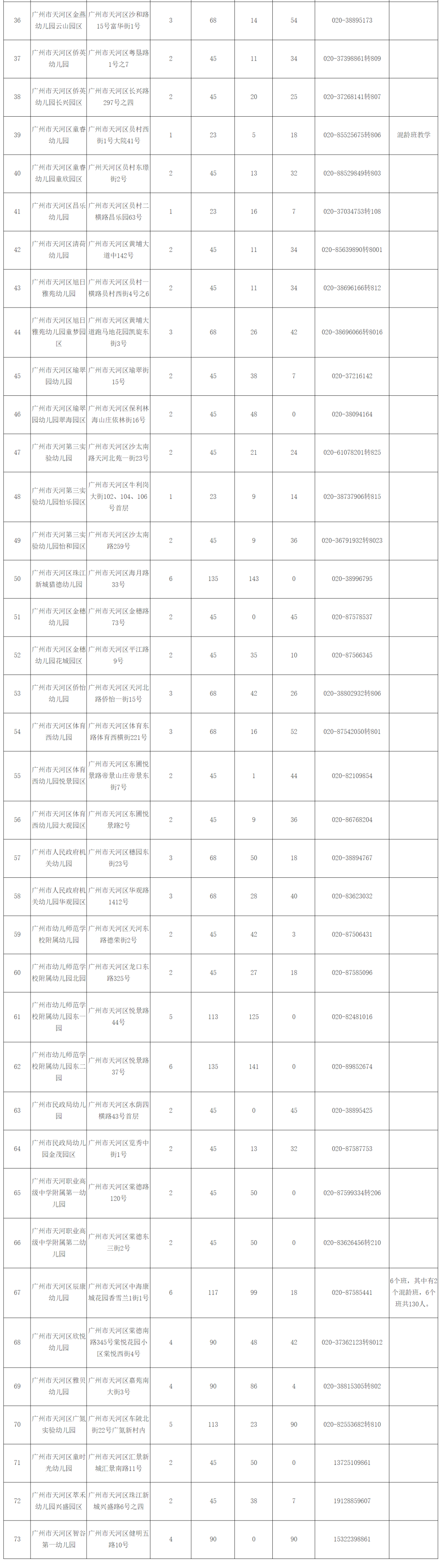 5月7日,天河区教育局发布教育部门办幼儿园小班对外电脑派位招生计划、幼儿特教班招生计划、其他部门办幼儿园对外信息表、民办幼儿园对外信息表。