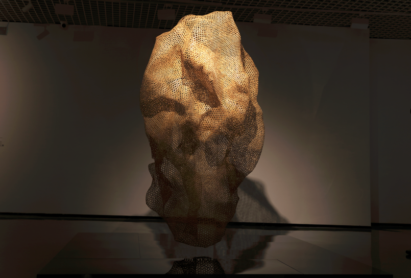 关于这个方面,他做了很多创新,获得很多专利。比如,他创造了“竹编六角针多曲面无骨成型法”,将竹藤编织工艺引入现代建筑空间与大型雕塑装置作品领域,使作品造型走向了自由意境,空间造型形成多曲面美感,丰富了编织图形的表达力与编织本体语言的特征彰显力,赋予了作品无限想象与延伸的空间。