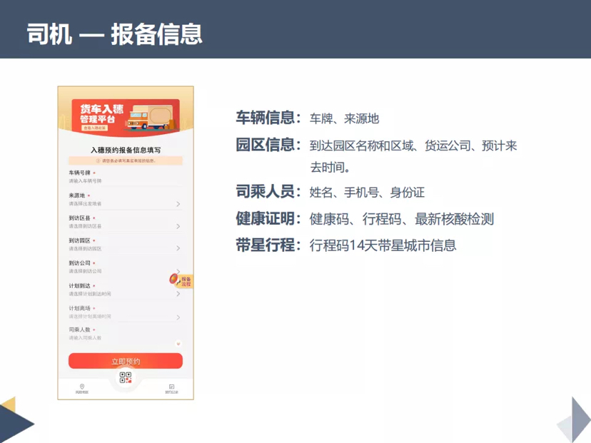 输入完成后点击“提交报备”,会提示预约成功。预约记录可在首页预约记录模块下查询。填报完成后,由目的地园区(企业)负责人员审核,审核通过后会生成货车入穗通行码,此二维码需要在到达目的地园区(企业)时出示。