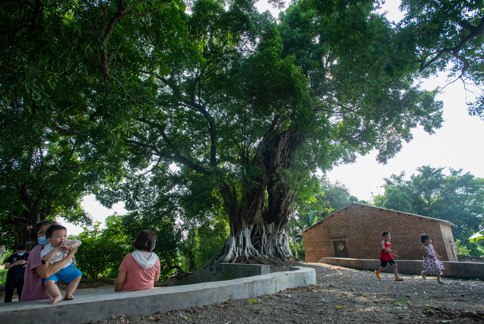 这棵542岁的老榕树周围是村民的避暑胜地,是村里开会、婚庆和放电影的重要场所,也是许多村民的童年乐园。