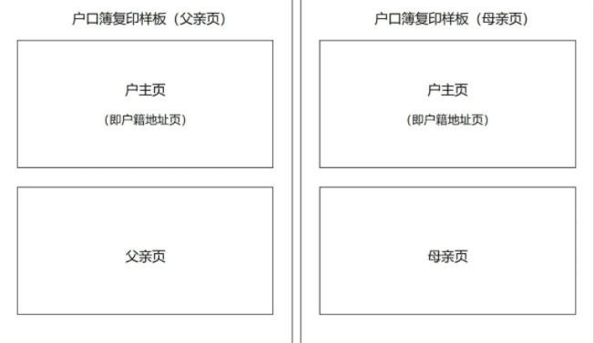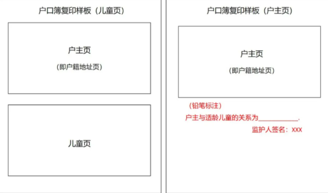 需提供户主页(即户籍地址页)、父母页及儿童页等,详见下方户口簿复印样板。