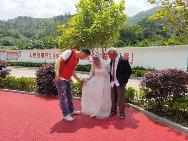 广州日报记者今天了解到,为进一步弘扬尊老、敬老的优良传统,推动新时代文明实践工作走深走实,南雄市组织公益摄影志愿者近日深入各村开展“把爱带回家 让幸福留影”公益摄影活动,通过广泛动员志愿者和志愿服务组织投身文明实践,为村民们免费拍摄“婚纱照”,用相机记录亲情,用镜头定格“最美夕阳红”。