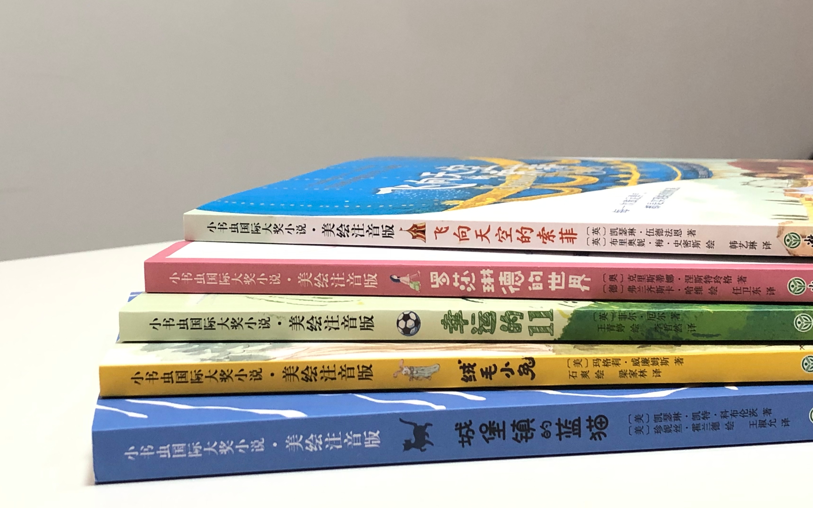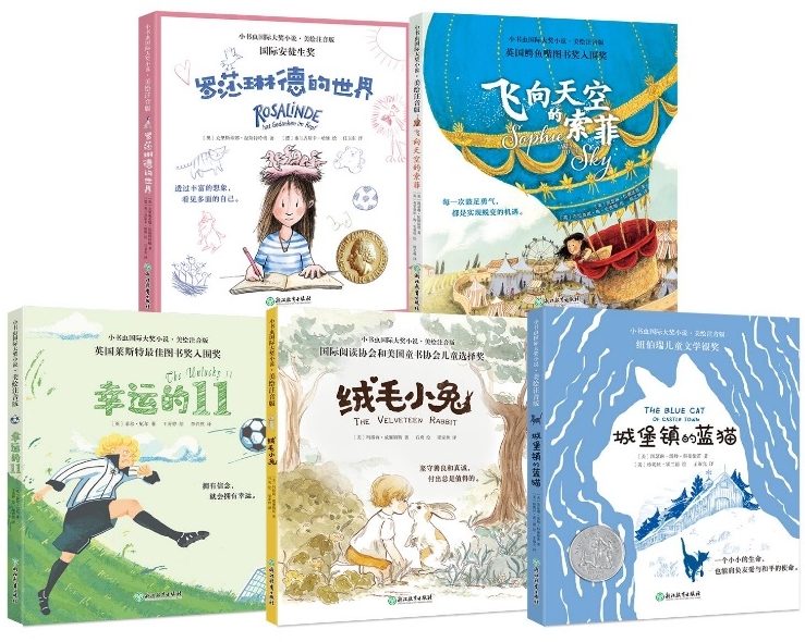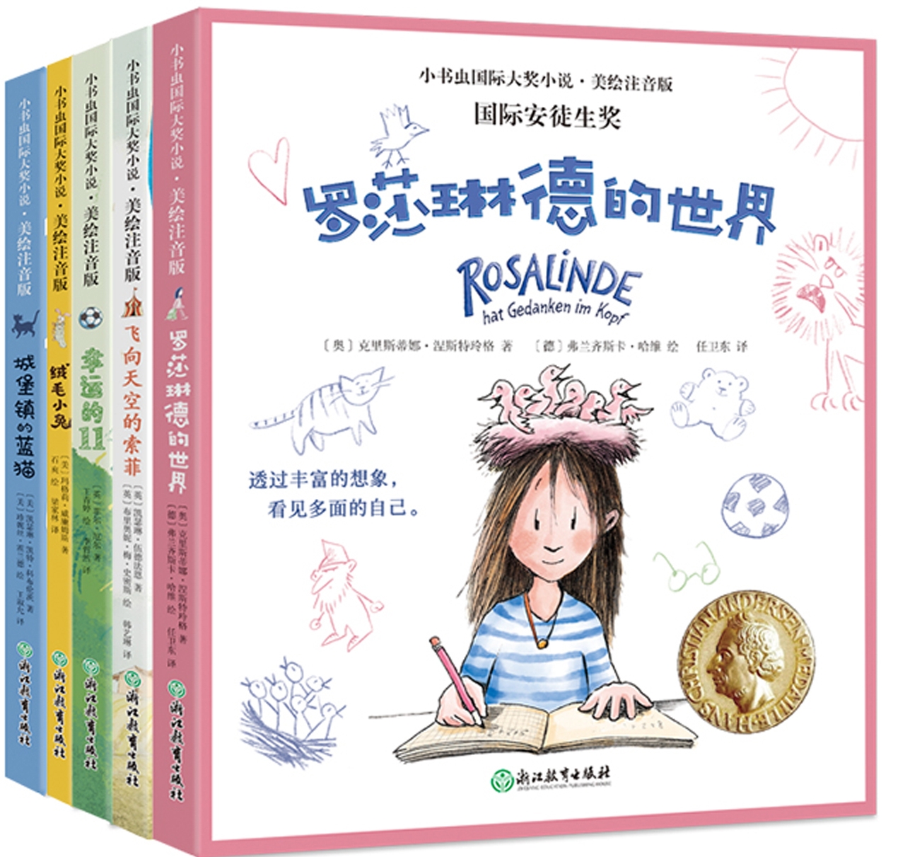 “小书虫国际大奖小说(美绘注音版)”第1辑精选了5本书:《罗莎琳德的世界》《飞向天空的索菲》《幸运的11》《绒毛小兔》和《城堡镇的蓝猫》。这些书全部荣获国际权威大奖,包括享誉世界的国际安徒生奖、纽伯瑞儿童文学银奖、国际阅读协会和美国童书协会儿童选择奖等。