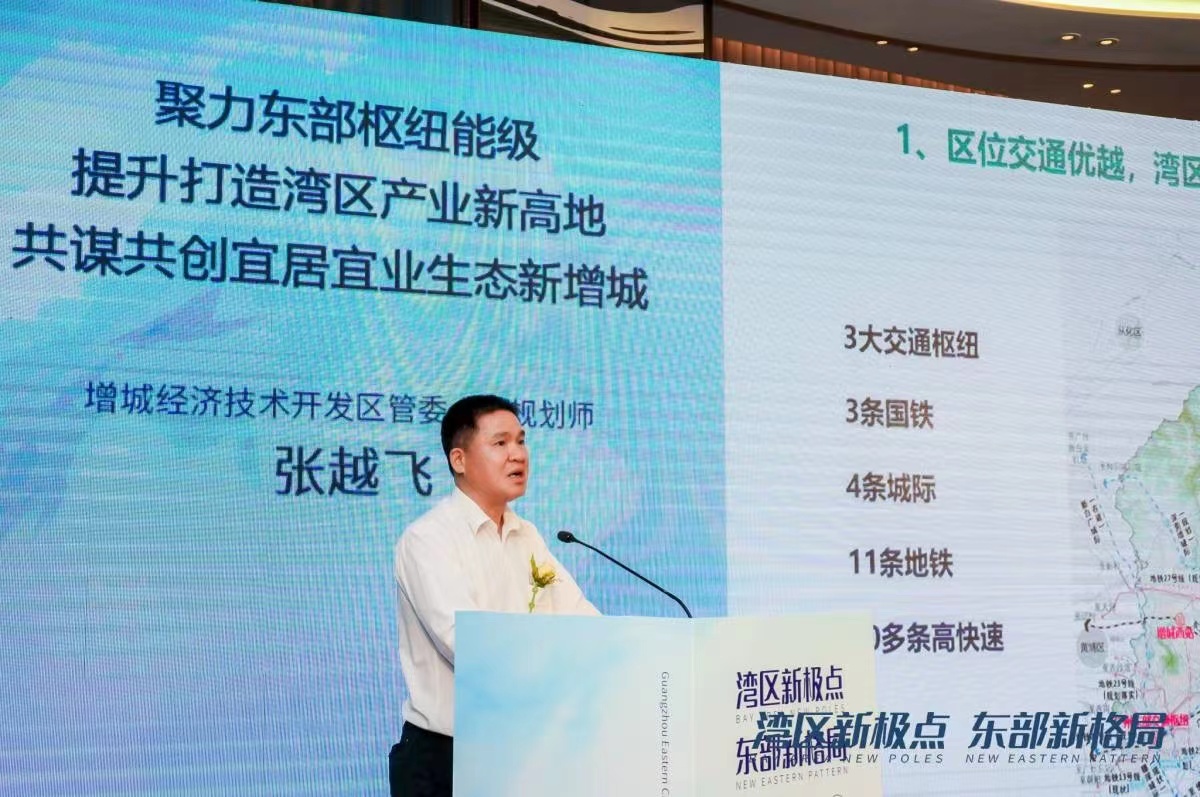 增城经济技术开发区管委会总规划师张越飞增城经济技术开发区管委会总规划师张越飞在演讲中指出,增城是广深两大都市圈的衔接节点,拥有得天独厚的区位优势和生态资源,是广州经济发展的重要增长极和动力源。未来30分钟可达广州中心城区,40分钟内坐拥广深两大空港,1小时左右可达大湾区主要城市。站在新的起点上,增城将努力建设成为基础设施完善、生态环境优良、规模适中、宜居宜业、具有吸引力和竞争力的广州东部枢纽。