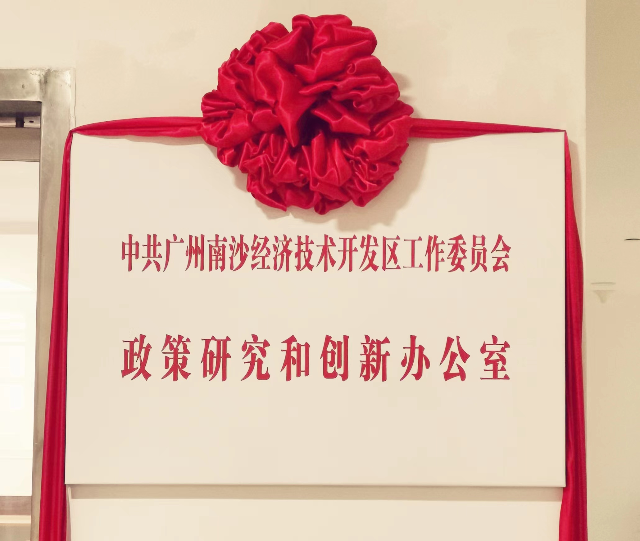 2022年5月7日,中共广州南沙经济技术开发区工作委员会政策研究和创新办公室(以下简称“政策研究和创新办公室”)正式挂牌成立。广州市委常委、南沙区委书记卢一先,南沙区政府区长董可,南沙开发区党工委副书记谢伟,区委常委、区委组织部部长张家炳出席挂牌仪式并揭牌。卢一先强调,组建政策研究和创新办公室是区委区政府把握立足新发展阶段、贯彻新发展理念、构建新发展格局、推动高质量发展要求,站在南沙开发开放的全局高度,作出的重大举措和实际行动。区委区政府对政策研究和创新办公室寄予厚望,要加快实现新机构从“物理重组”到“化学反应”的转变,力争将政策研究和创新办公室打造成为南沙的“最强大脑”,为南沙高质量发展提供智力支撑。