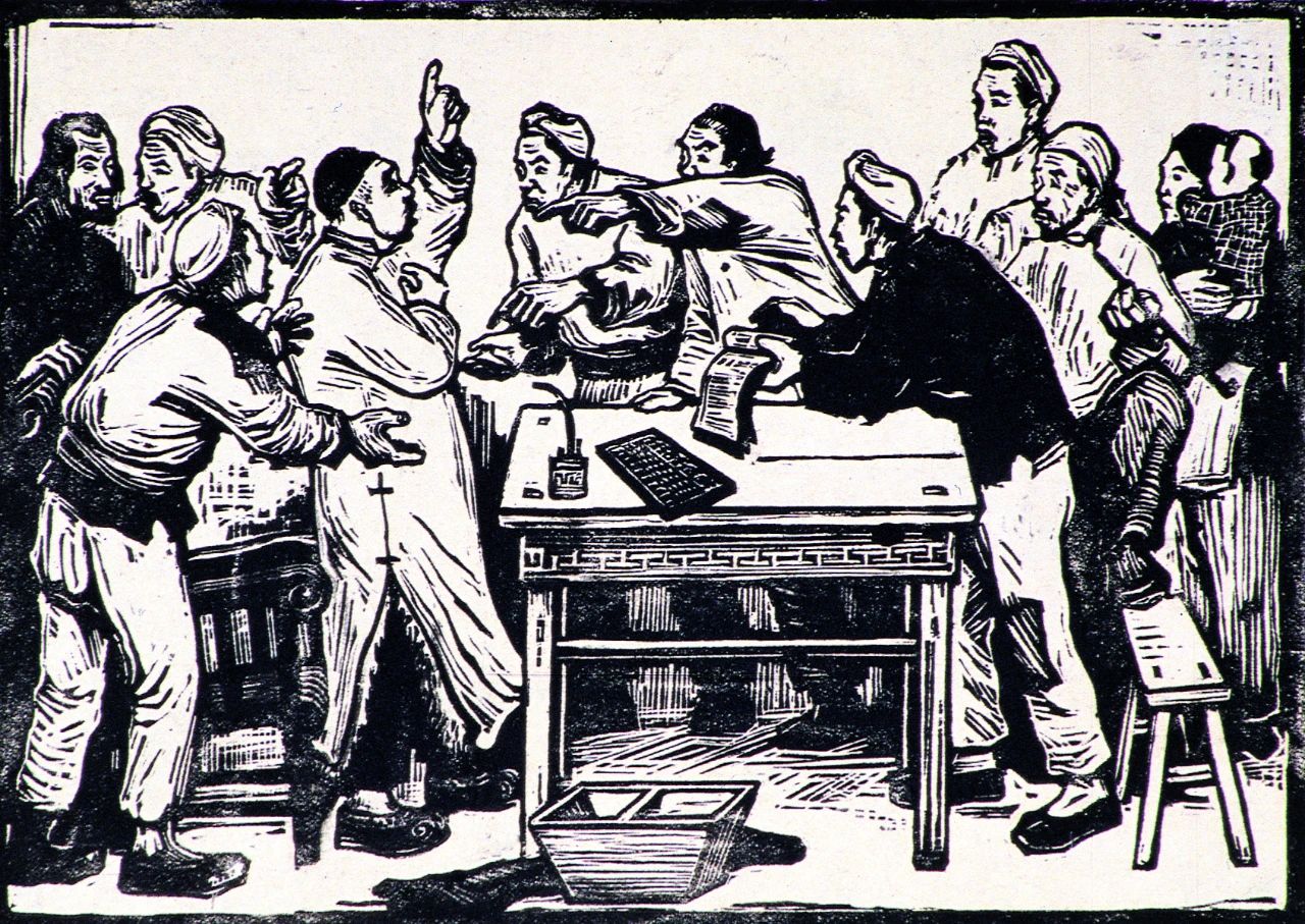 《减租会》 古元 木刻 1943年 广东美术馆藏