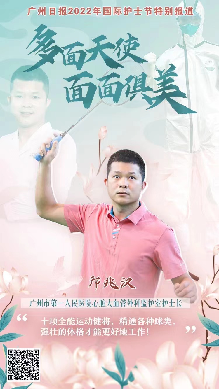 “他好像不会累似的,永远都有饱满的热情,对待病人像亲人般细致,护理技术也非常过硬,是我们医院有名的干将。”在医院采访时,邝兆汉的病人、同事、领导都给予他极高的评价。