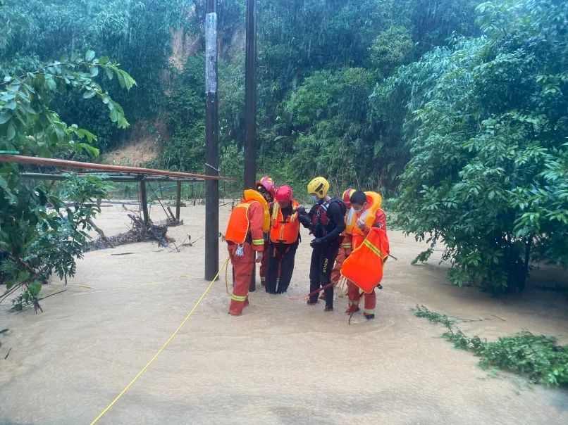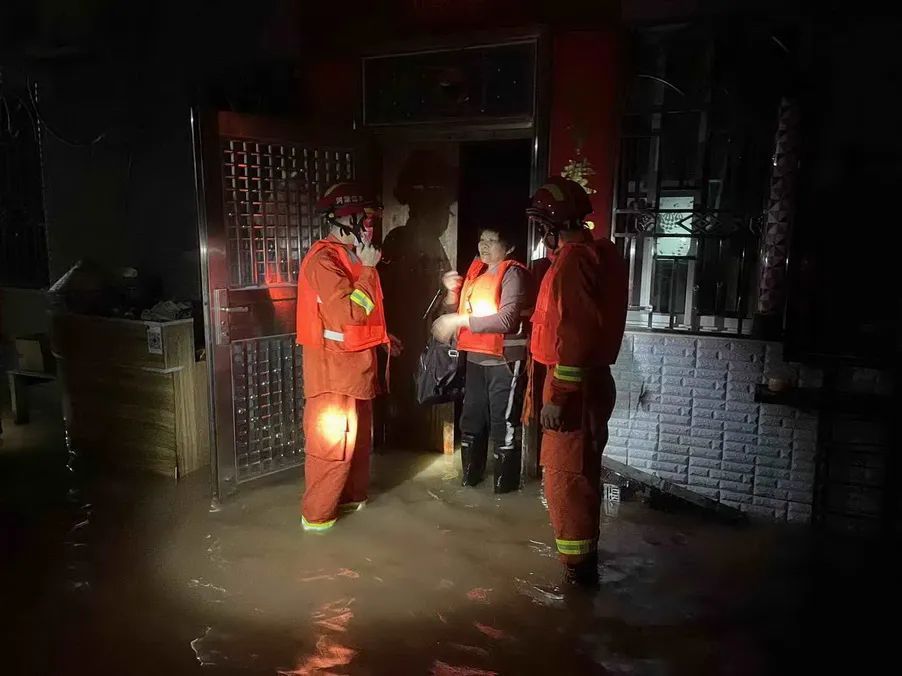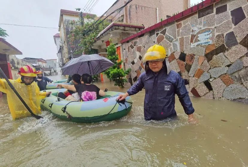 其中一位老人因身体原因急需呼吸机,水位太高导致救护车无法抵达住户处,现场救援人员一人撑伞、一人在前方探路,全程护送老人到救护车并转送医院救治。经过2个多小时紧张救援,共疏散195名被困群众,排查55户人家。