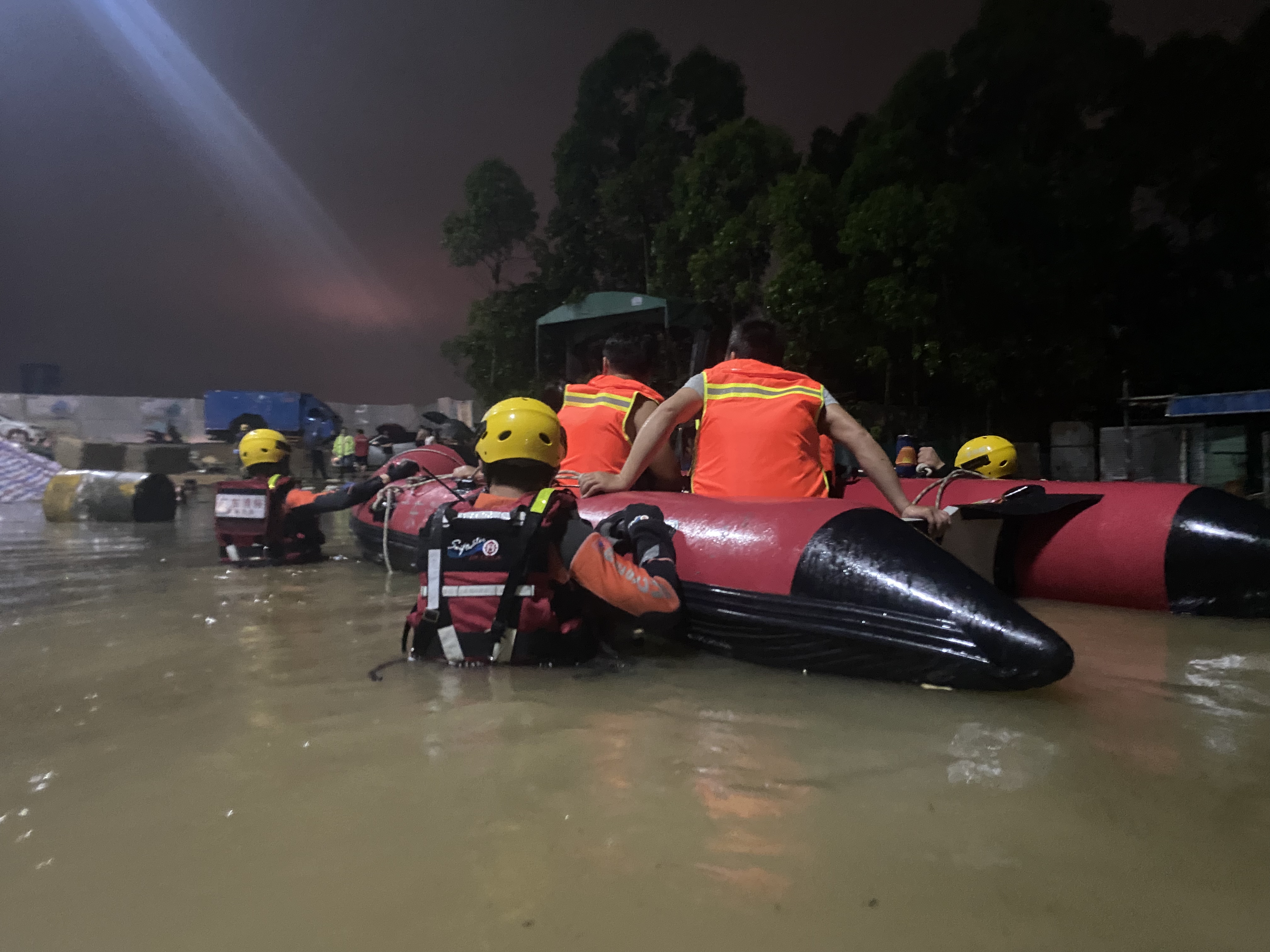 消防救援人员到场后发现,现场最高水位超1.5米,有较为浓烈的混合油气味,水面较多漂浮物。消防救援人员迅速进入工地搜寻是否有被困人员,侦查员挨个房间搜寻后发现有18名被困人员,但因守护设备不愿离开房间。