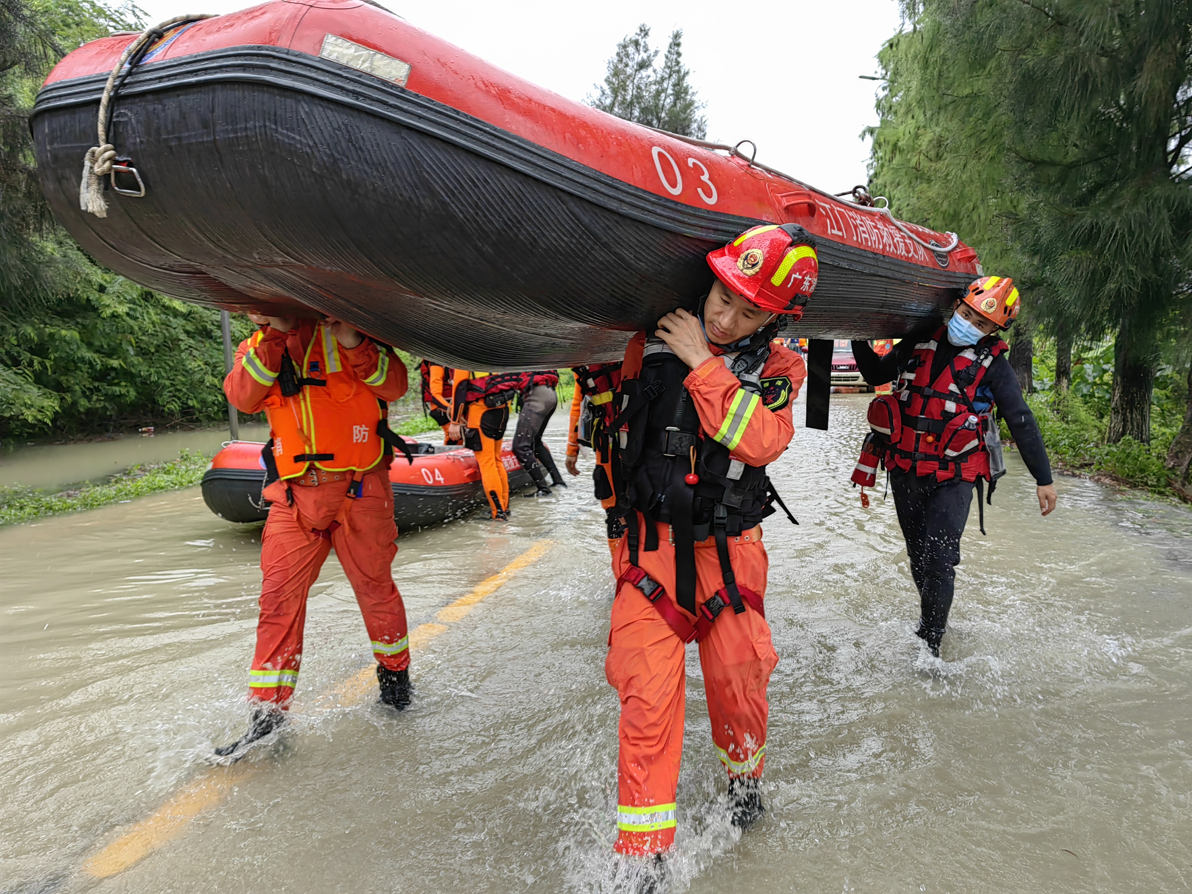 由于老人腿部活动不便,消防救援人员立即将其背出,送至舟艇上转移到安全地带。在护送其至其亲人身边,消防员将老人安顿好后,才继续返回执勤点恢复备勤。